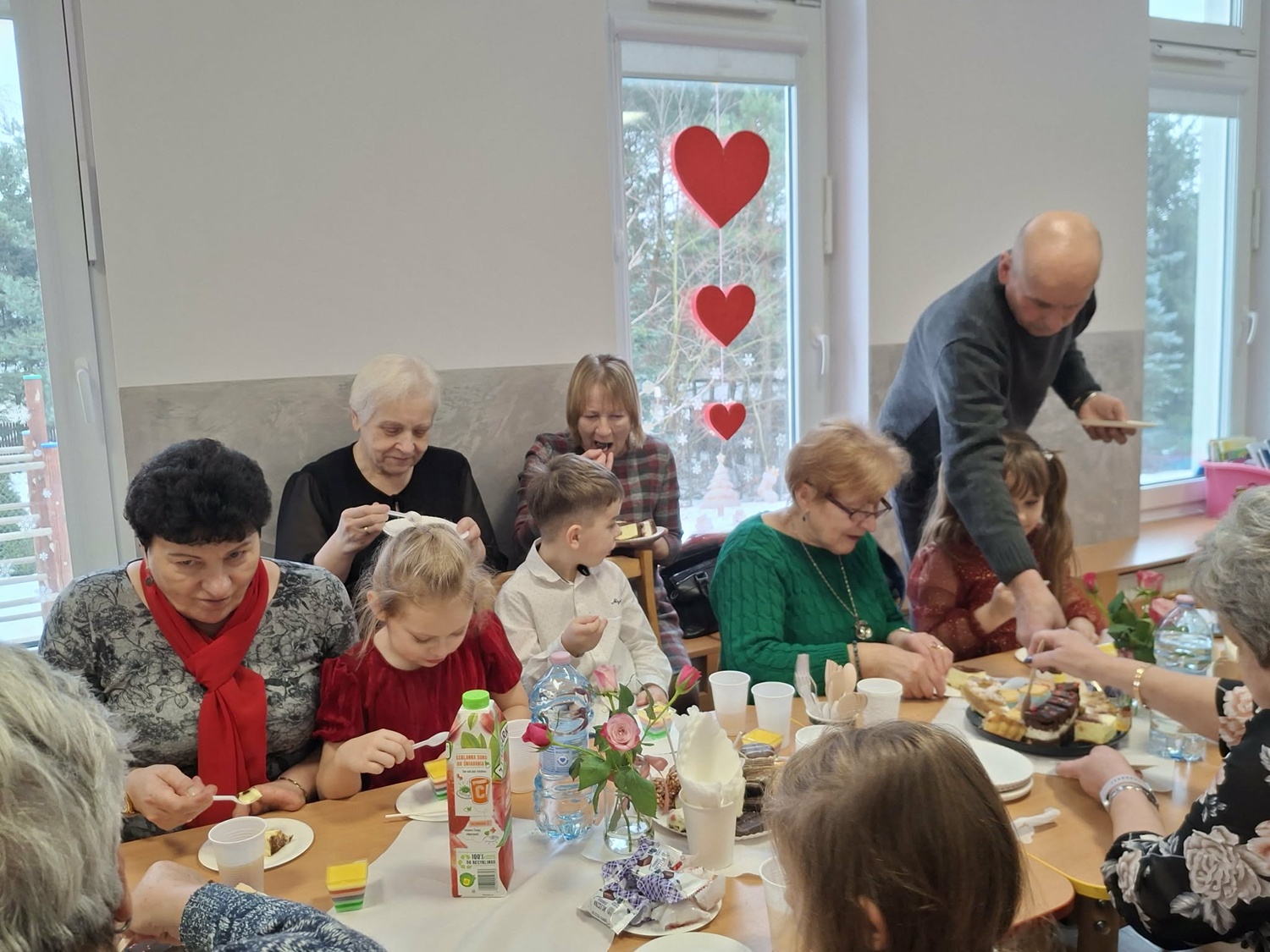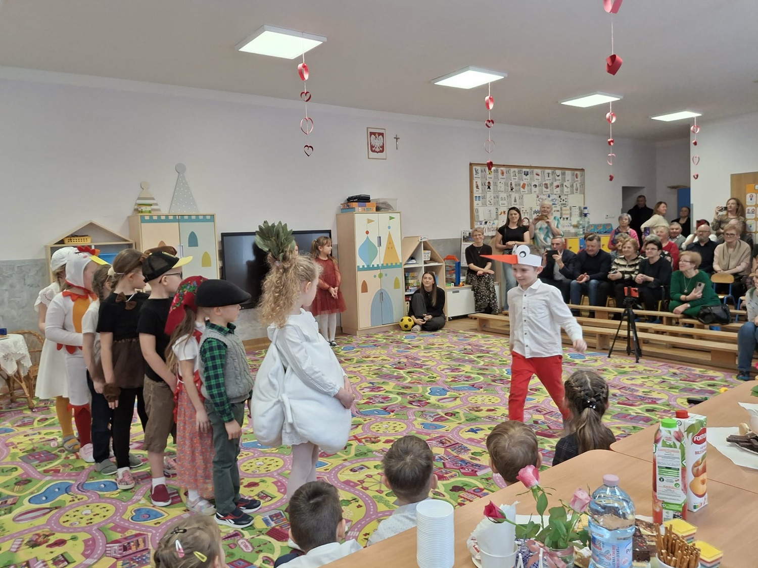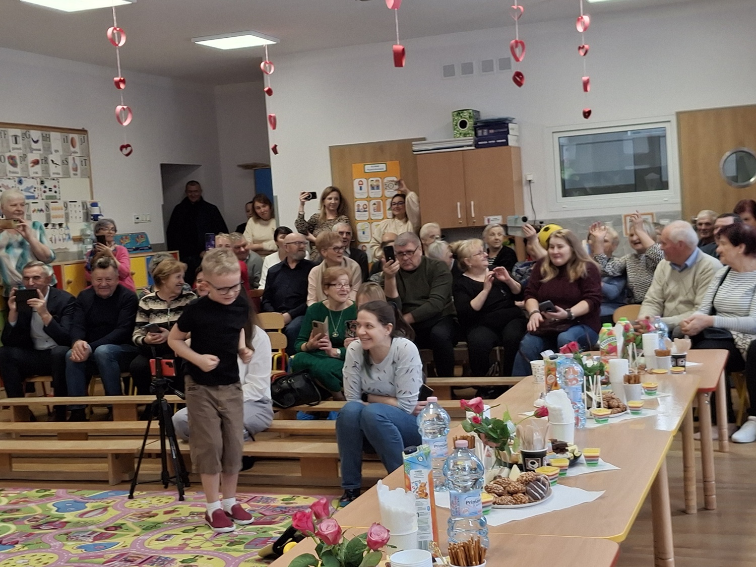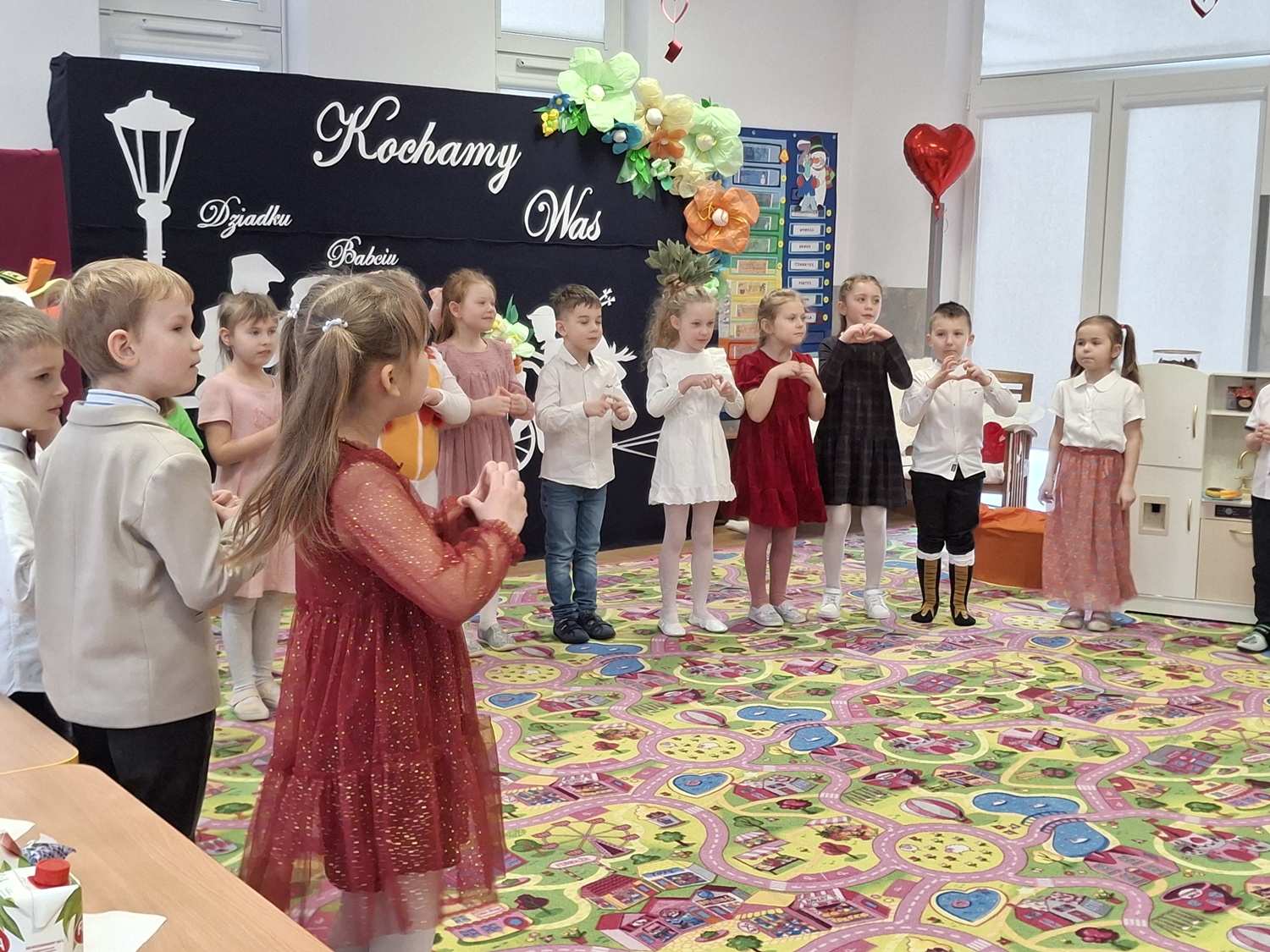 27 stycznia 2026r., Sówki gościły w przedszkolu swoich ukochanych dziadków. Dzieci przygotowały muzyczną inscenizację wiersza J. Tuwima pt. “Rzepka”. Nie zabrakło również pięknych piosenek, wierszy, życzeń i podziękowań. Wnuki i wnuczki zaprosiły dziadków do wspólnego walczyka. Po występie wręczyły przygotowane wcześniej upominki i złożyły życzenia, do których dołączyła się pani dyrektor. Następnie wszyscy zasiedli do słodkiego poczęstunku, o który zatroszczyły się mamy. Serdecznie dziękujemy za odwiedziny babciom i dziadkom i jeszcze raz życzymy dużo zdrowia, szczęścia i uśmiechu na co dzień.