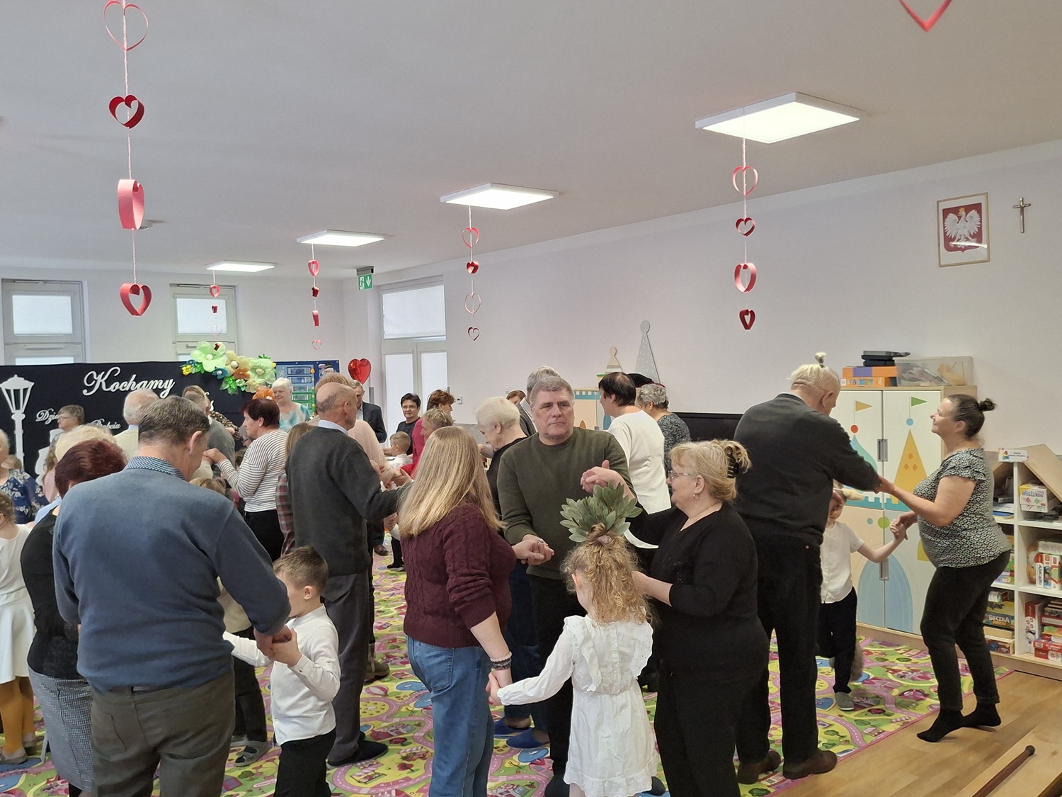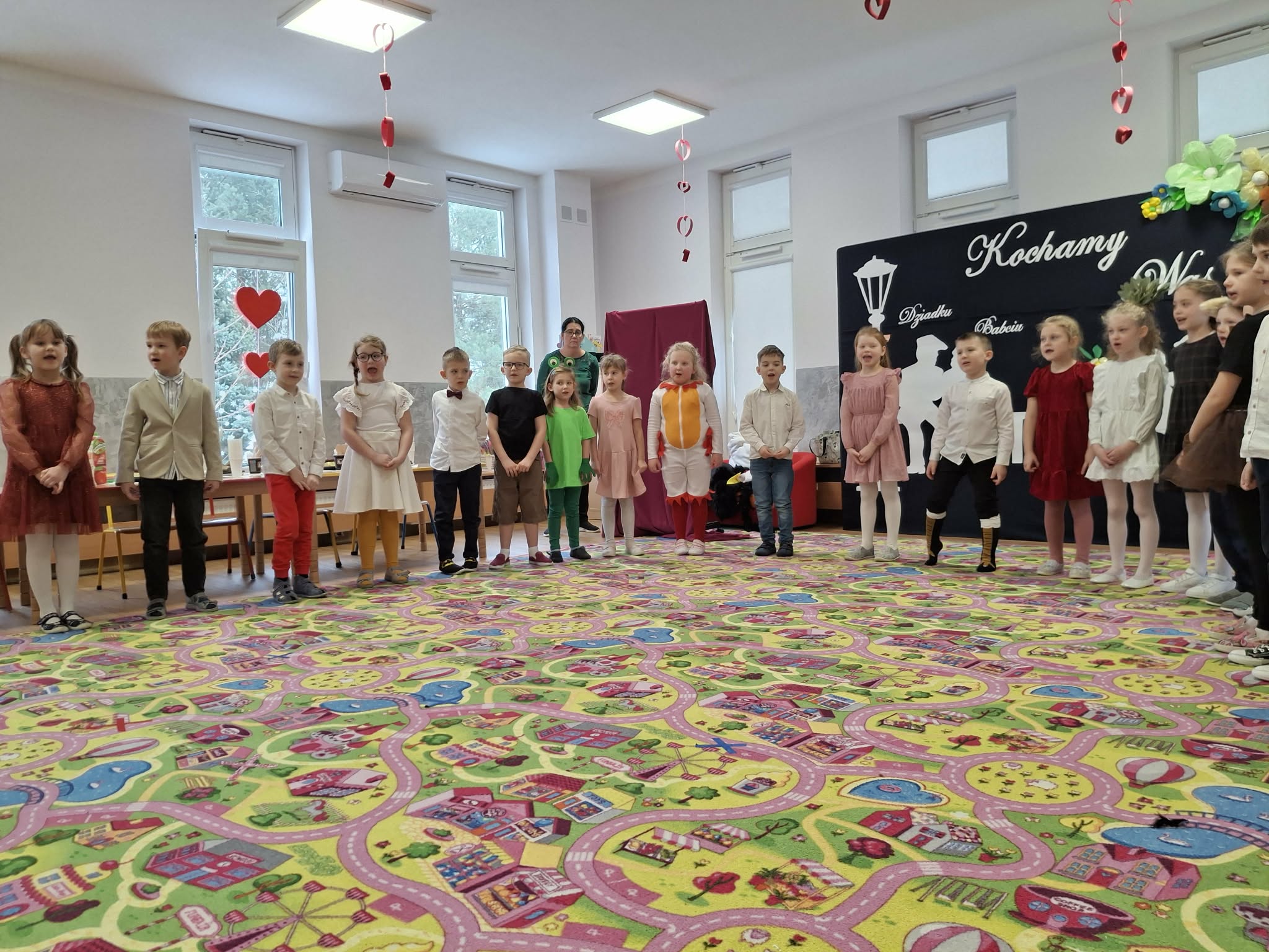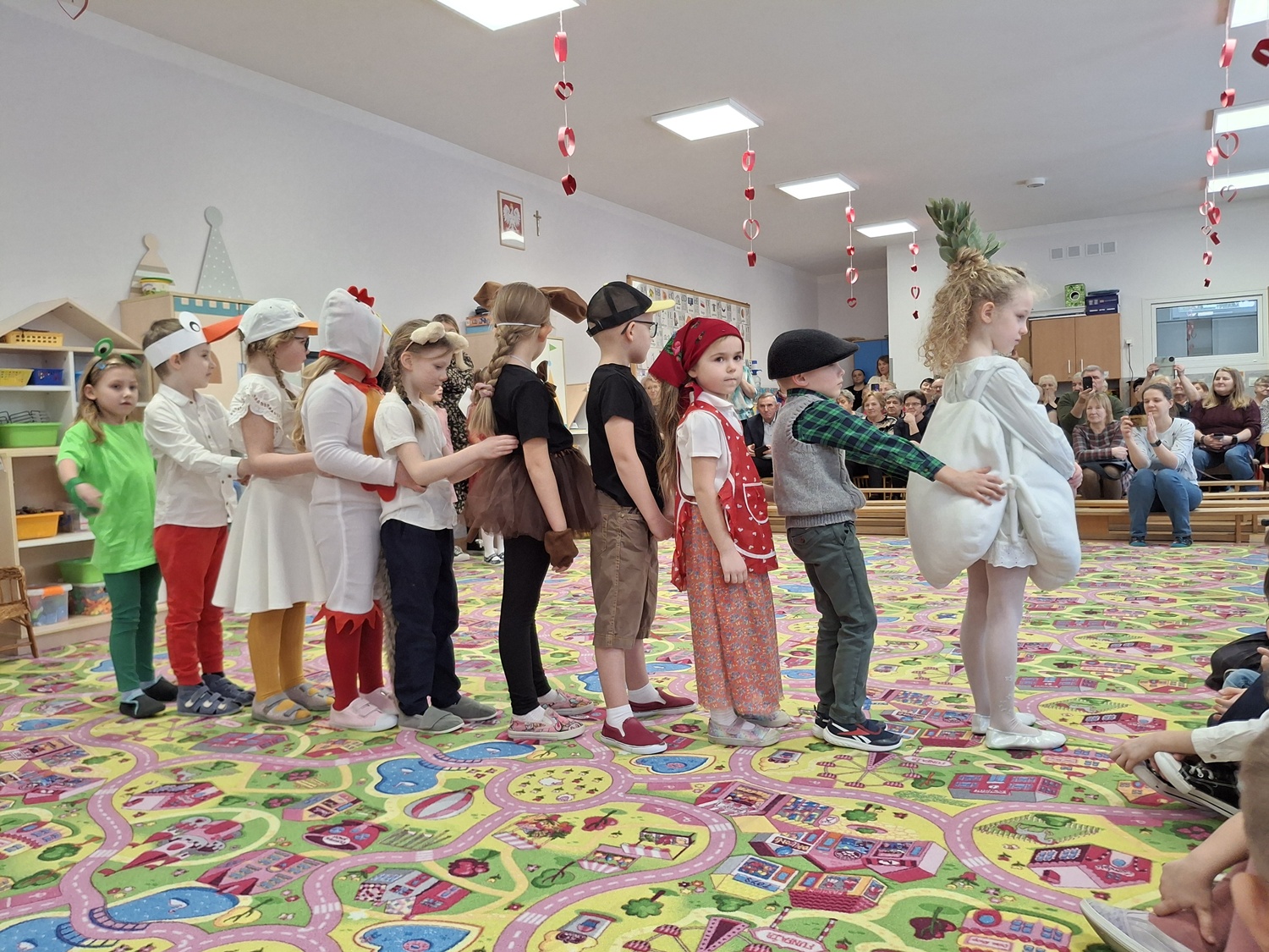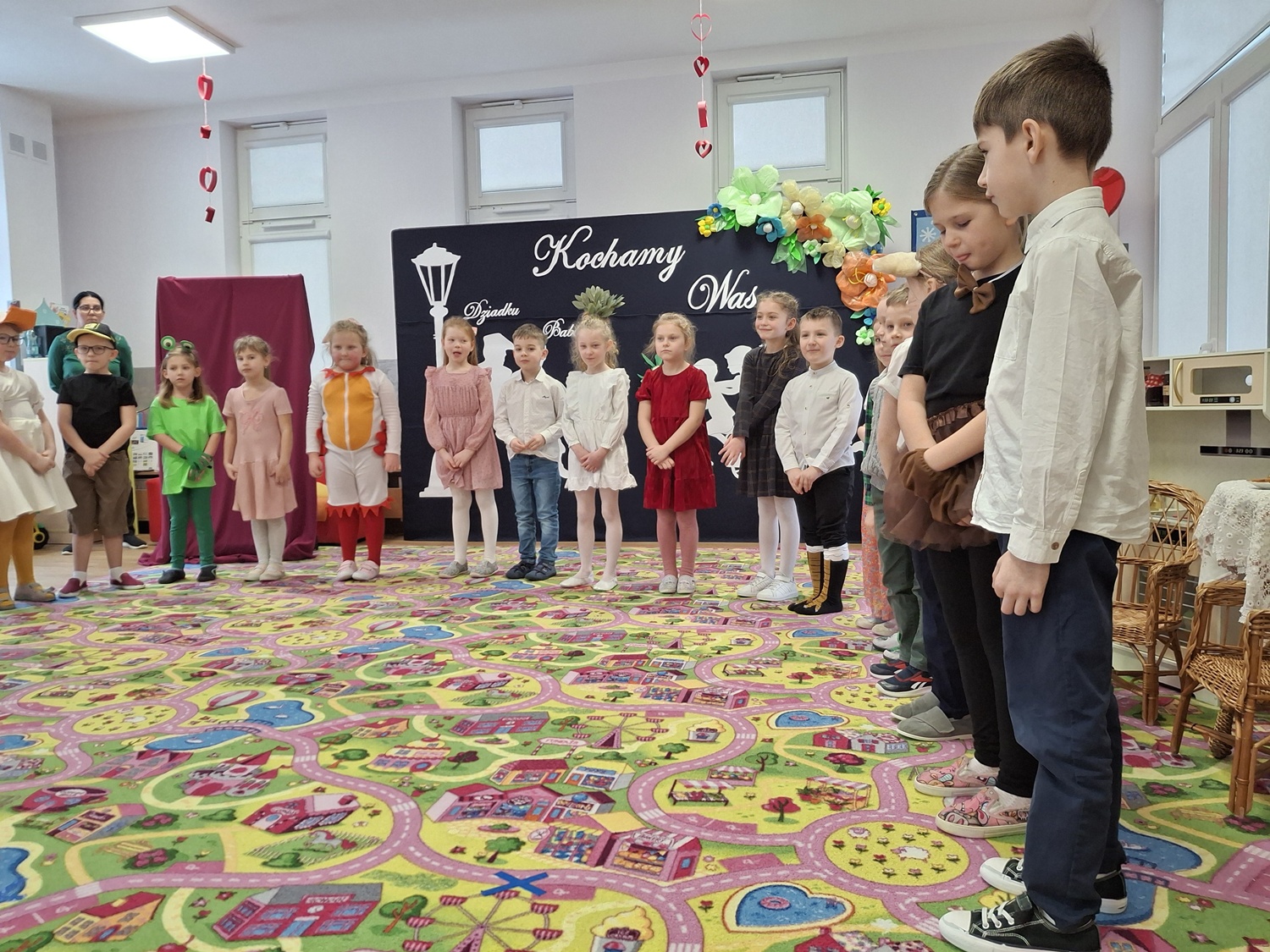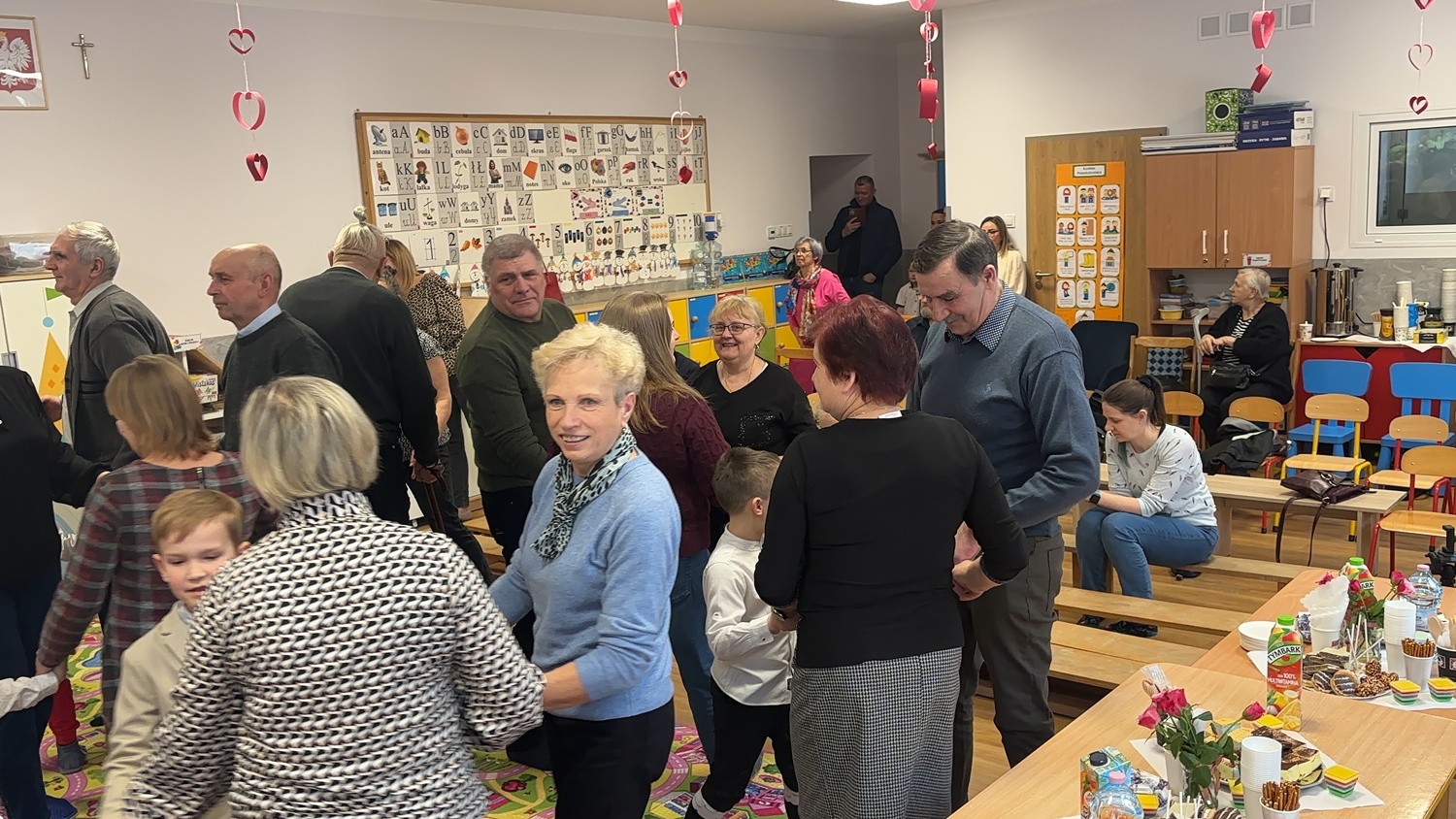27 stycznia 2026r., Sówki gościły w przedszkolu swoich ukochanych dziadków. Dzieci przygotowały muzyczną inscenizację wiersza J. Tuwima pt. “Rzepka”. Nie zabrakło również pięknych piosenek, wierszy, życzeń i podziękowań. Wnuki i wnuczki zaprosiły dziadków do wspólnego walczyka. Po występie wręczyły przygotowane wcześniej upominki i złożyły życzenia, do których dołączyła się pani dyrektor. Następnie wszyscy zasiedli do słodkiego poczęstunku, o który zatroszczyły się mamy. Serdecznie dziękujemy za odwiedziny babciom i dziadkom i jeszcze raz życzymy dużo zdrowia, szczęścia i uśmiechu na co dzień.