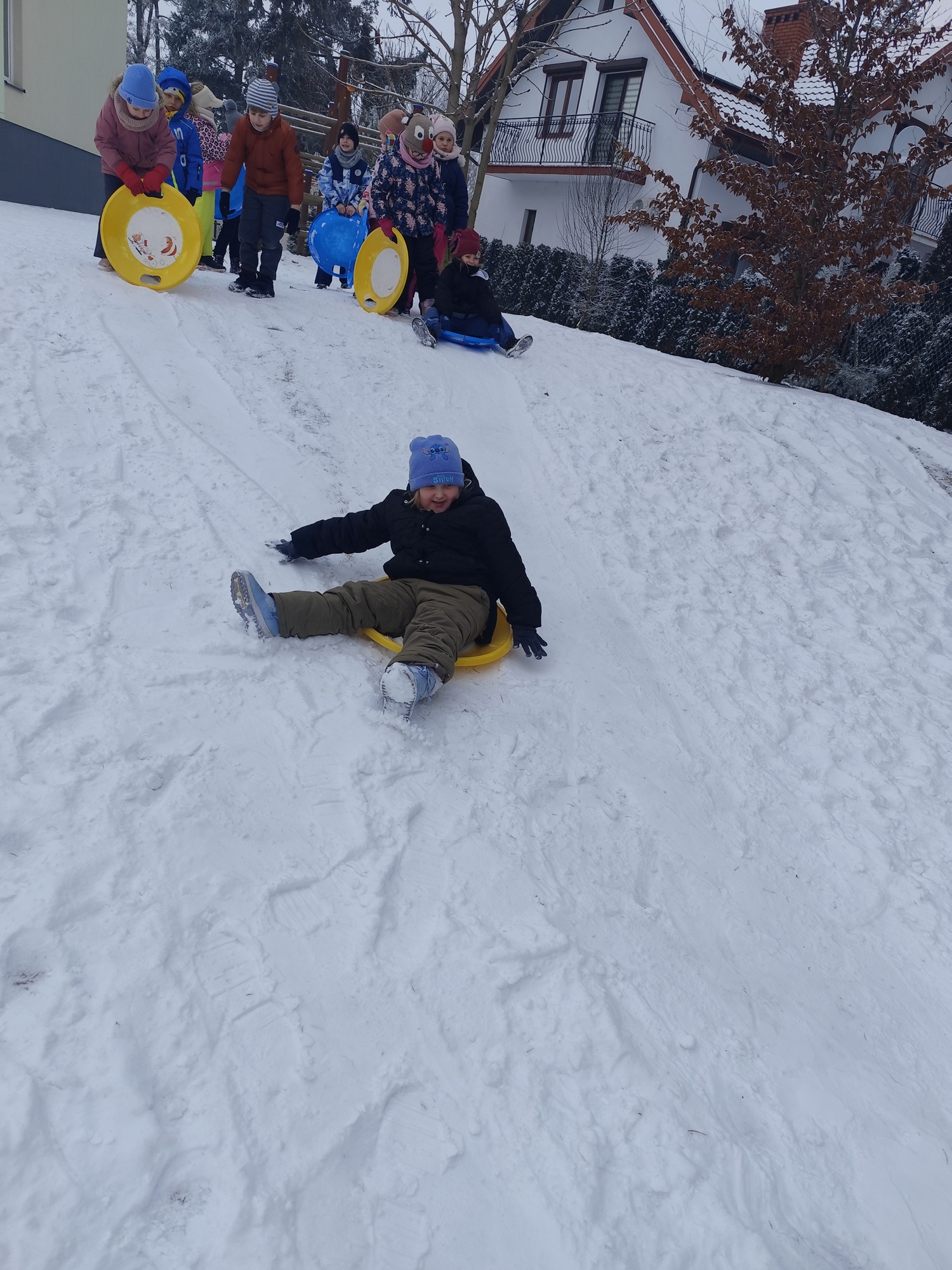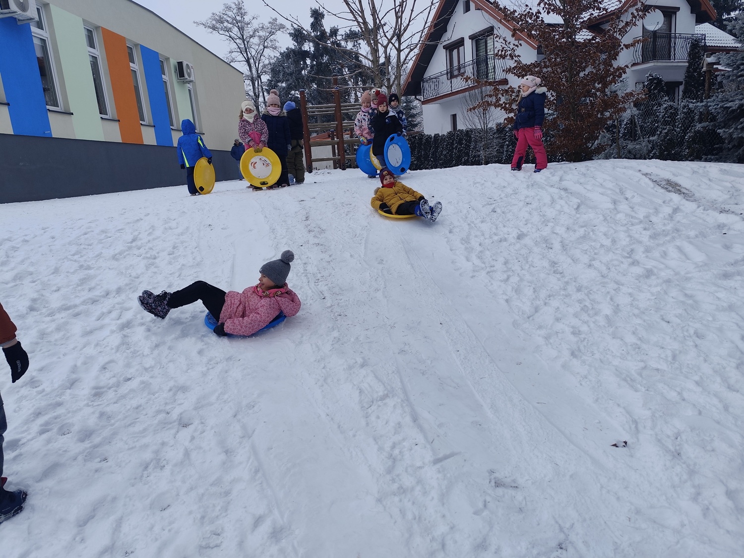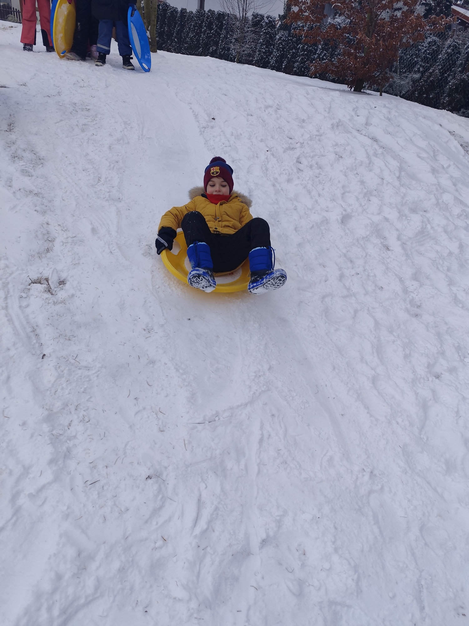 Wreszcie zawitała do nas prawdziwa zima - spadł śnieg i przedszkolaki cieszyły się z tego rzadkiego widoku. Dzieci całkowicie oddały się zimowej bezpiecznej zabawie. Mróz nikomu nie przeszkadzał, a do przedszkola wróciły z rumieńcami i szerokimi uśmiechami na twarzy.