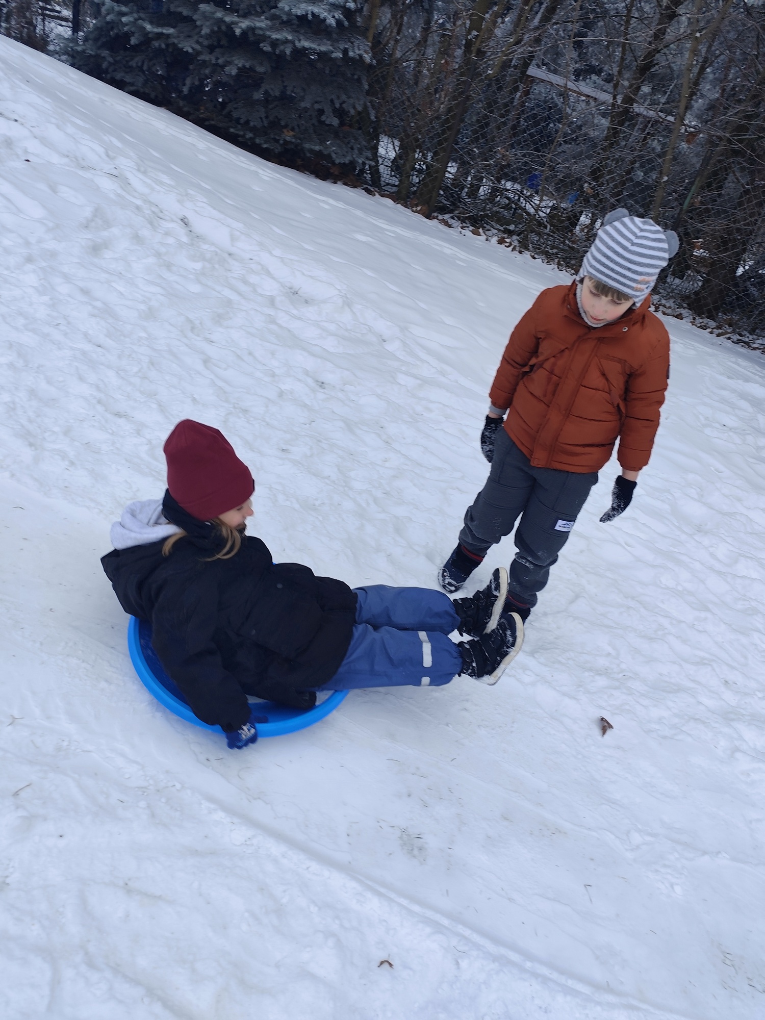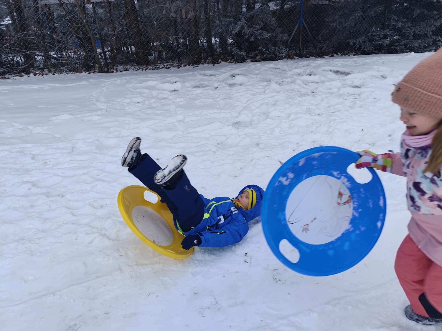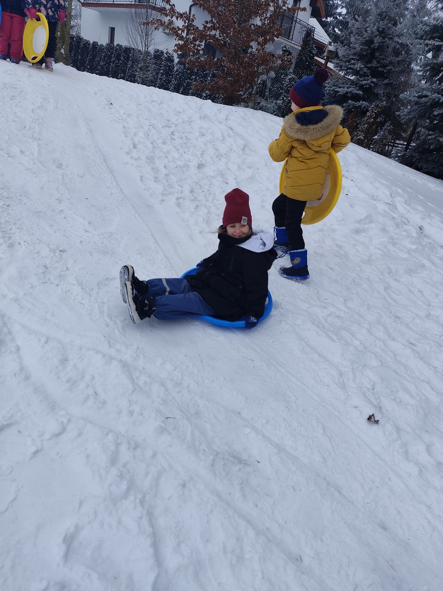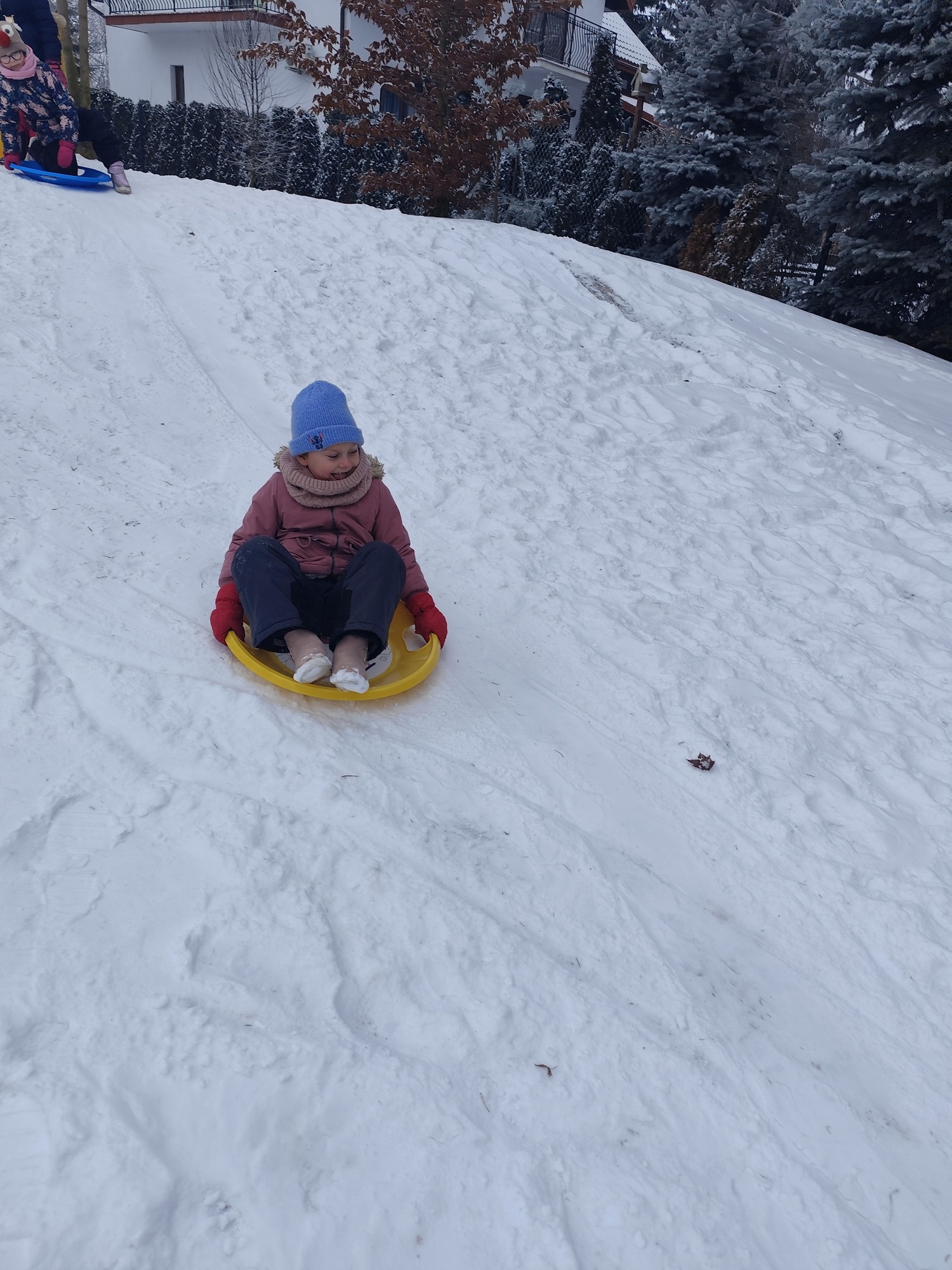 Wreszcie zawitała do nas prawdziwa zima - spadł śnieg i przedszkolaki cieszyły się z tego rzadkiego widoku. Dzieci całkowicie oddały się zimowej bezpiecznej zabawie. Mróz nikomu nie przeszkadzał, a do przedszkola wróciły z rumieńcami i szerokimi uśmiechami na twarzy.