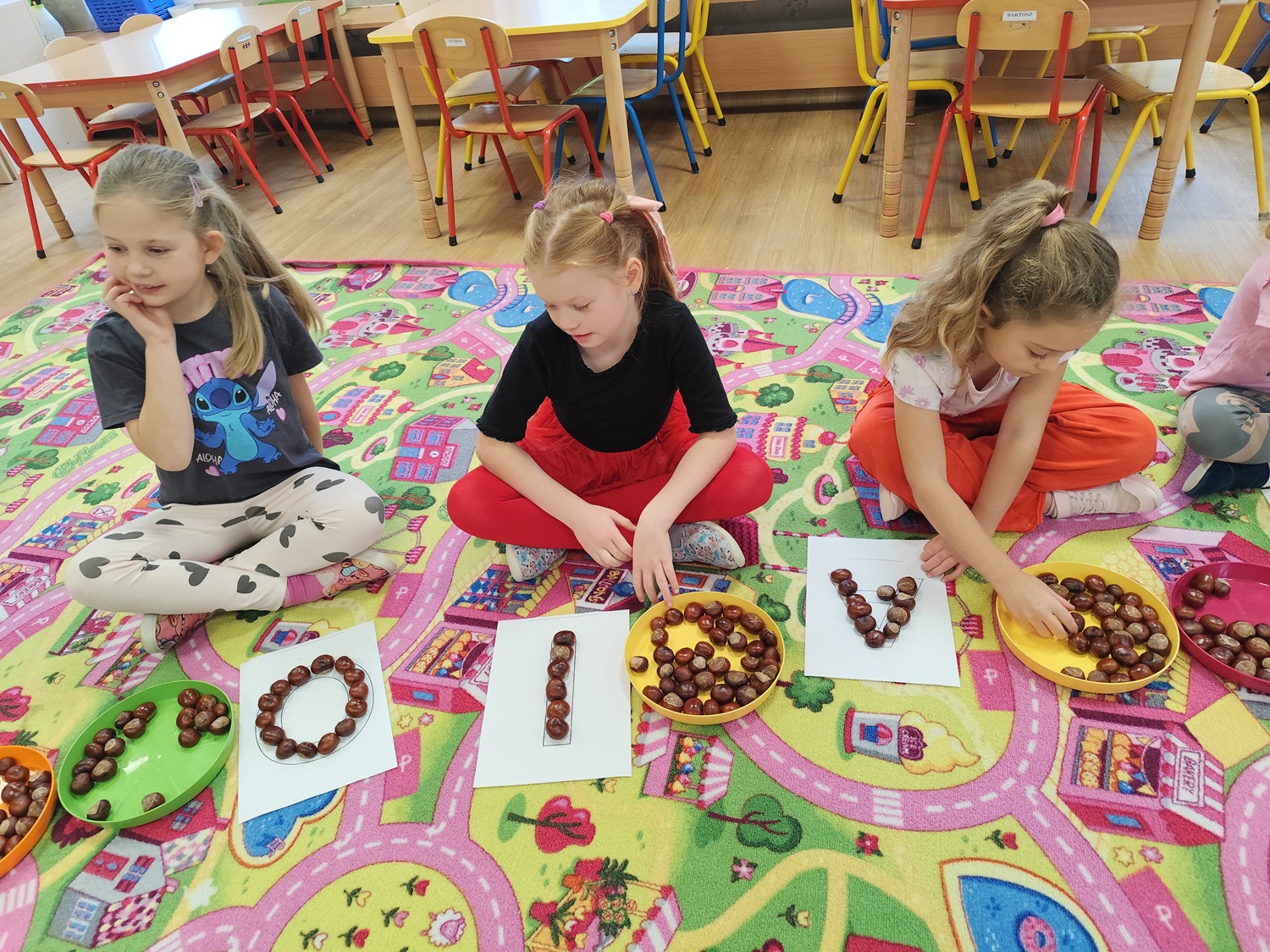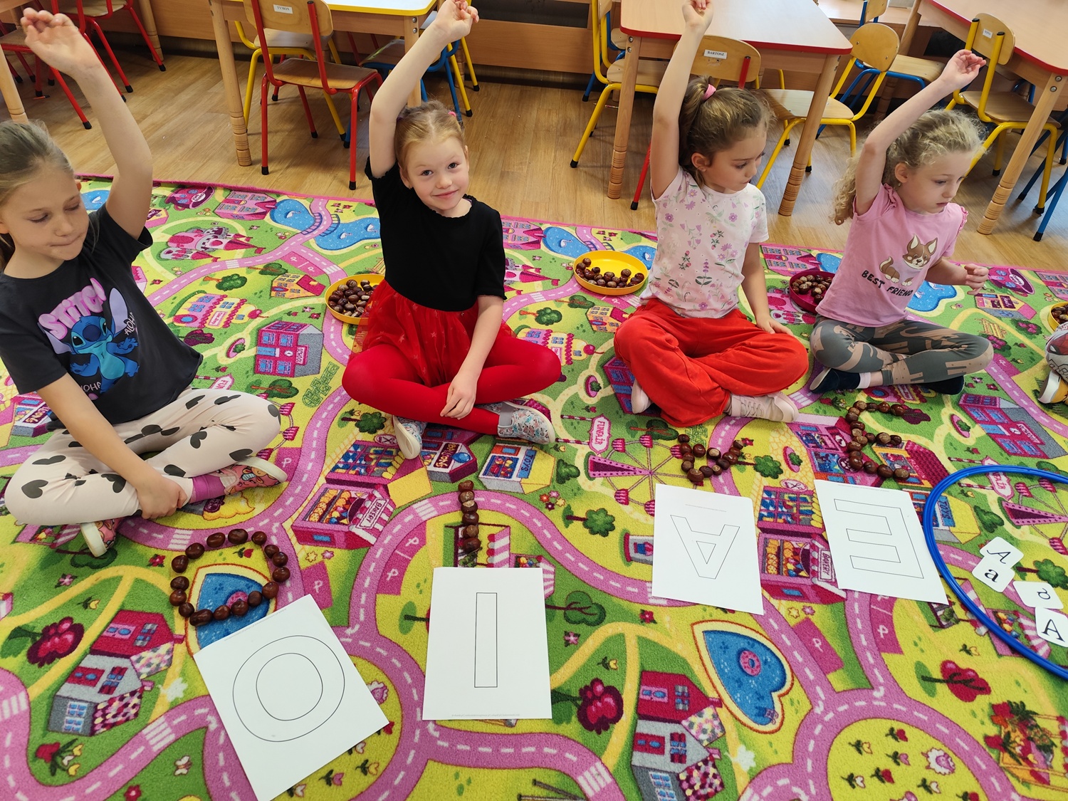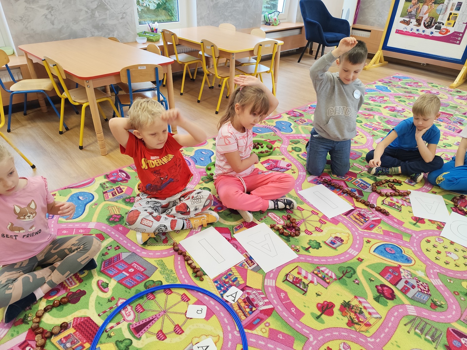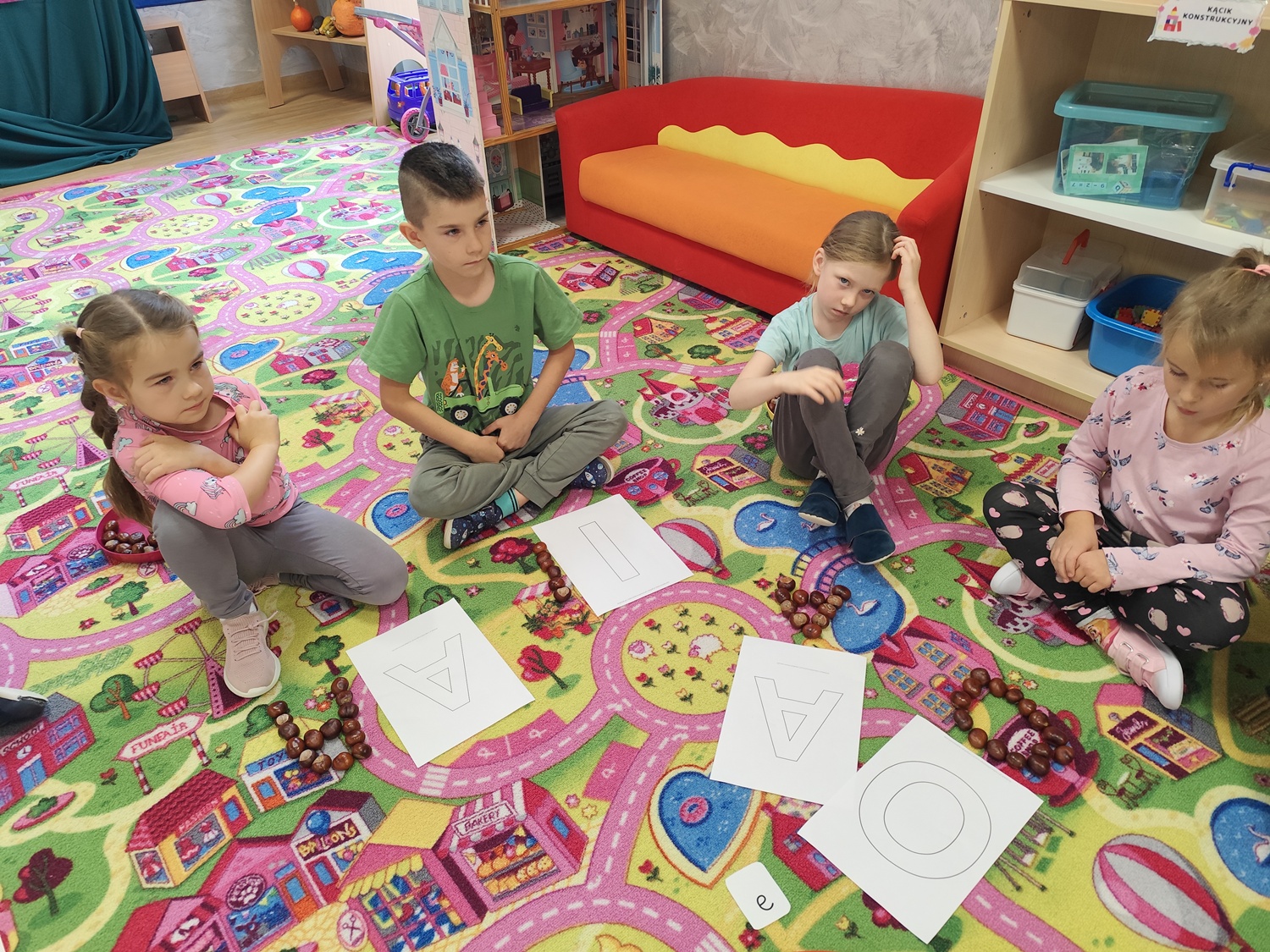 Sówki bardzo chętnie podejmują zabawy mające na celu poznawanie literek. Układają ich sylwety z różnorodnych materiałów np. przyrodniczych, segregują je, uczą się prawidłowej pisowni wykorzystując tablicę multimedialną. Ozdabiają sylwety liter wg własnego pomysłu. Podczas zabaw słuchowych wysłuchują głosek w nagłosie i wygłosie. Dzielą wyrazy na sylaby i głoski. Niektóre dzieci podejmują próby czytania sylab oraz prostych zdań.