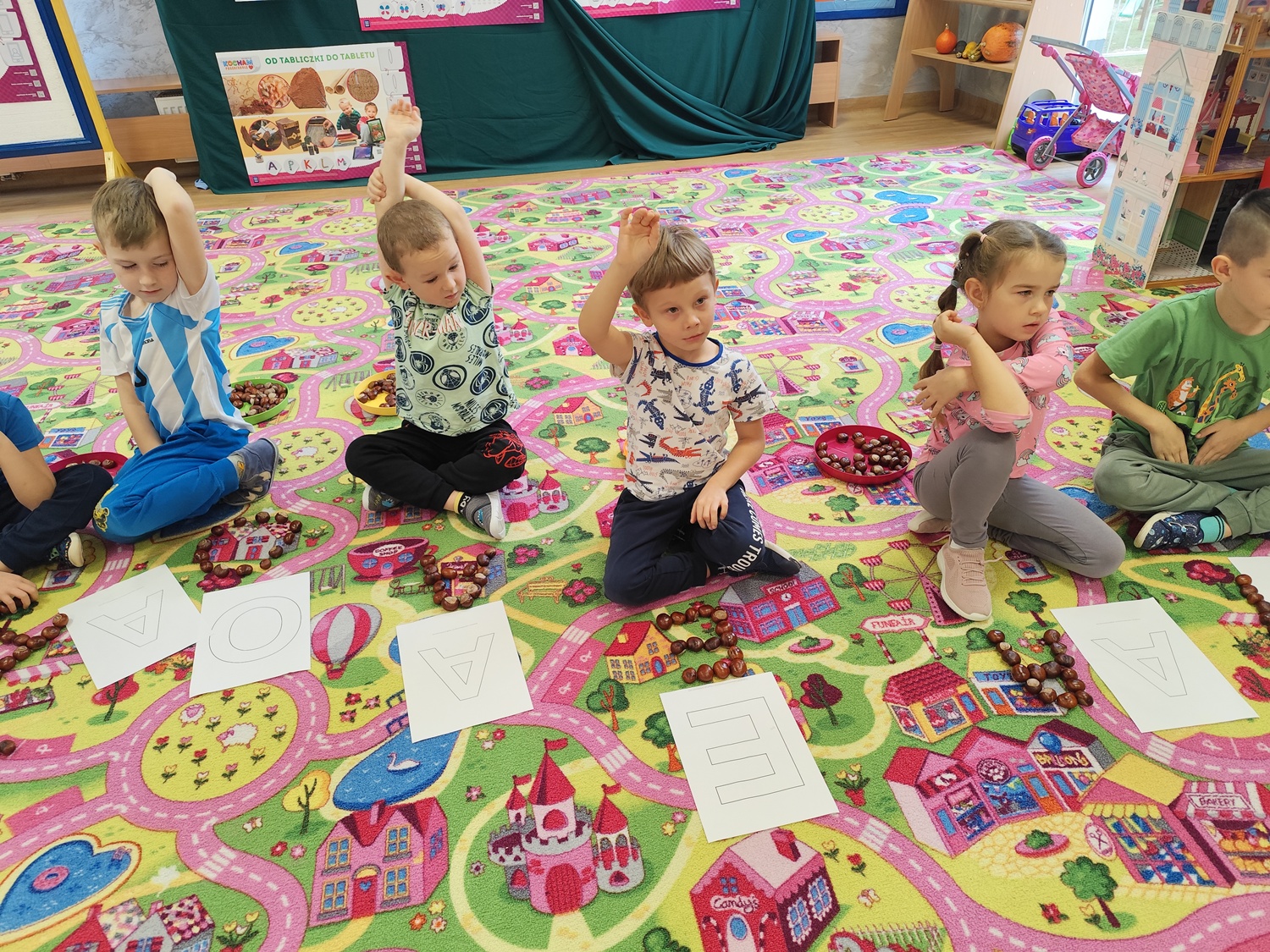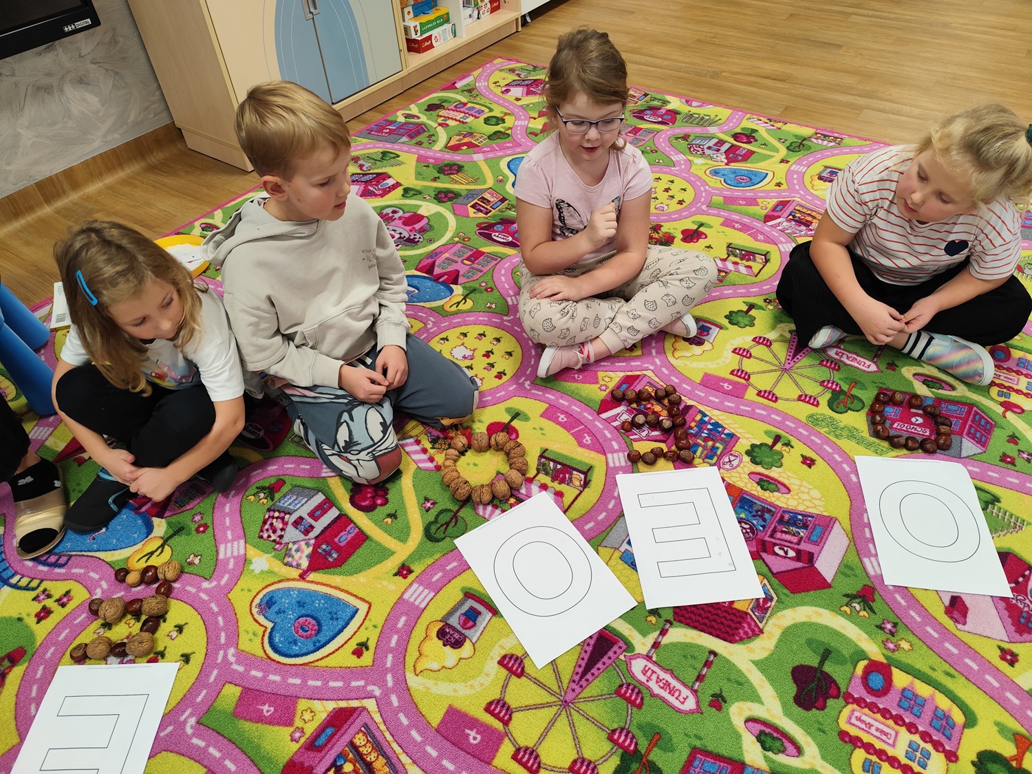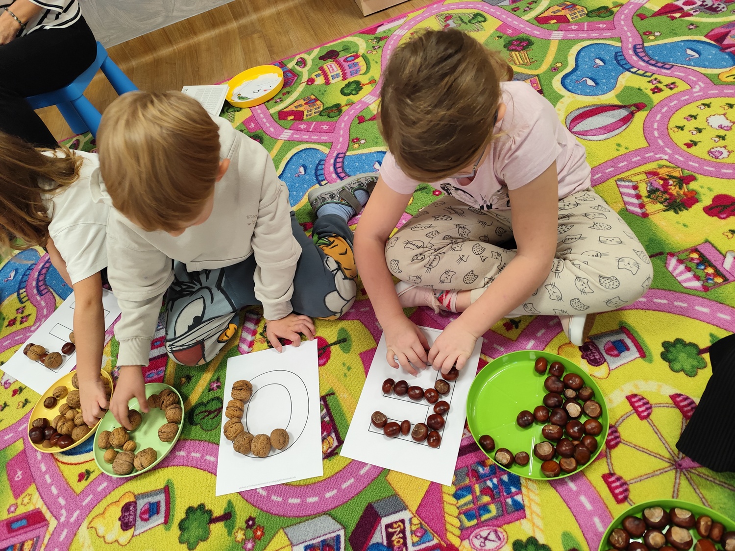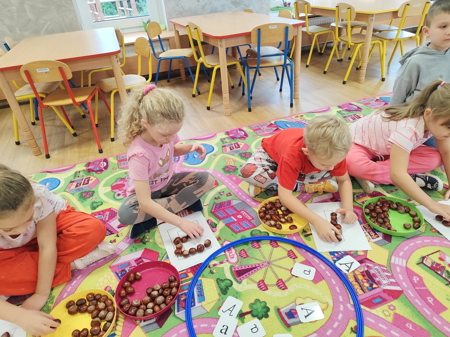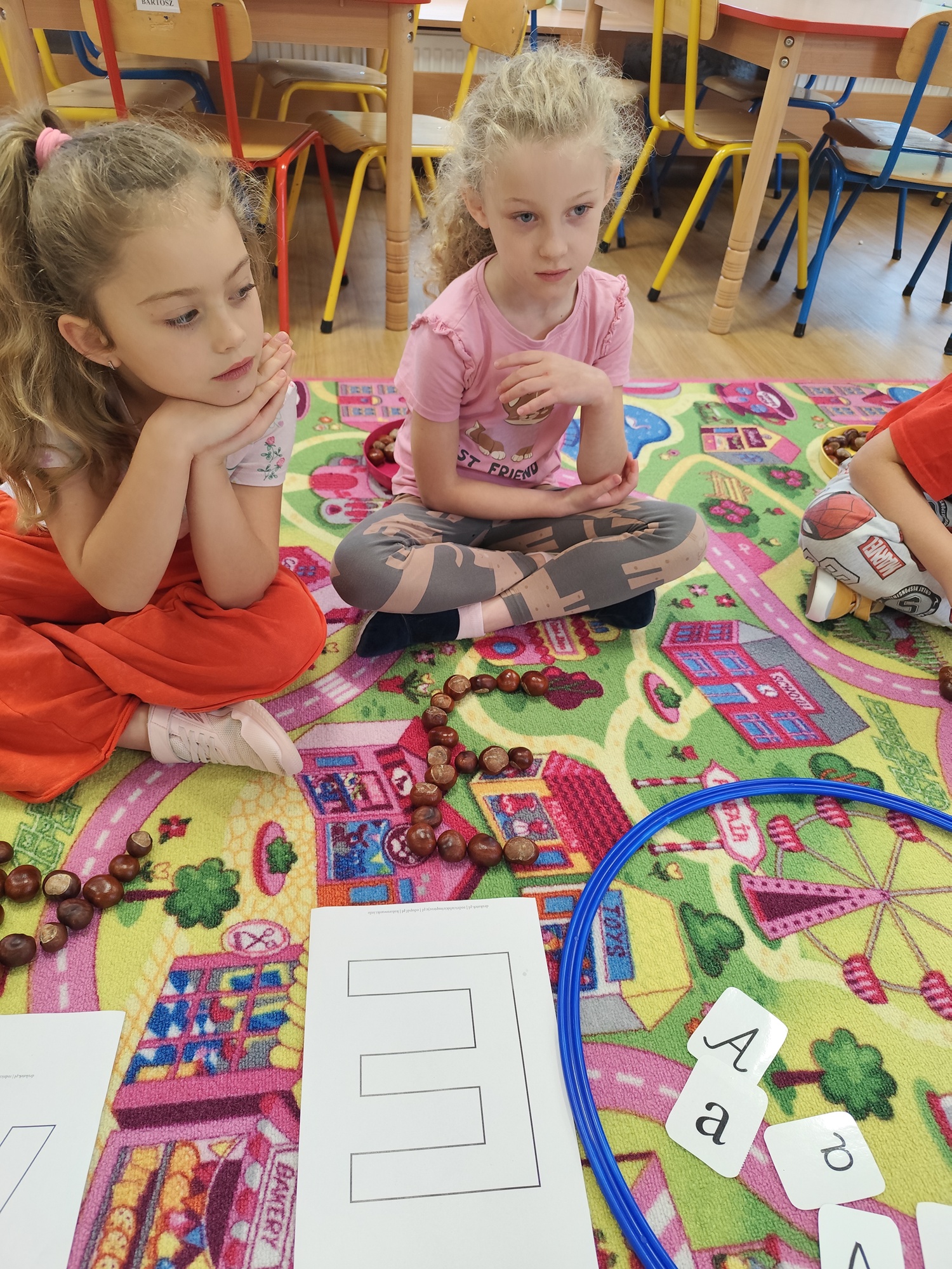 Sówki bardzo chętnie podejmują zabawy mające na celu poznawanie literek. Układają ich sylwety z różnorodnych materiałów np. przyrodniczych, segregują je, uczą się prawidłowej pisowni wykorzystując tablicę multimedialną. Ozdabiają sylwety liter wg własnego pomysłu. Podczas zabaw słuchowych wysłuchują głosek w nagłosie i wygłosie. Dzielą wyrazy na sylaby i głoski. Niektóre dzieci podejmują próby czytania sylab oraz prostych zdań.