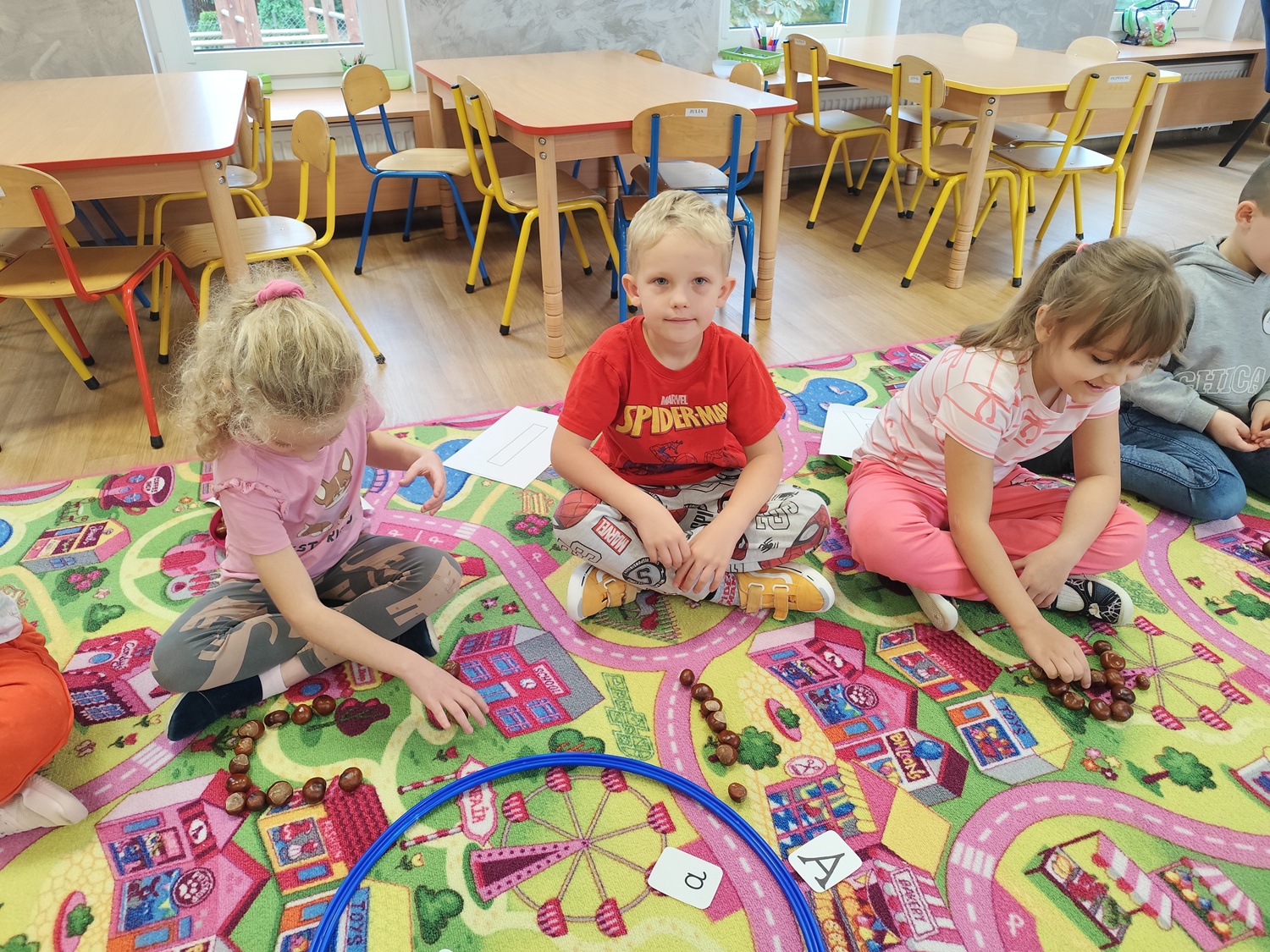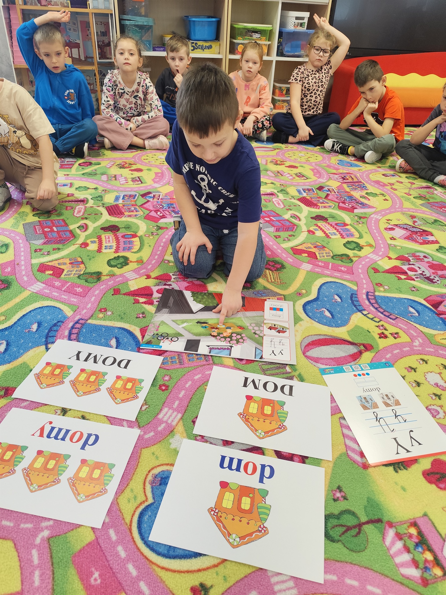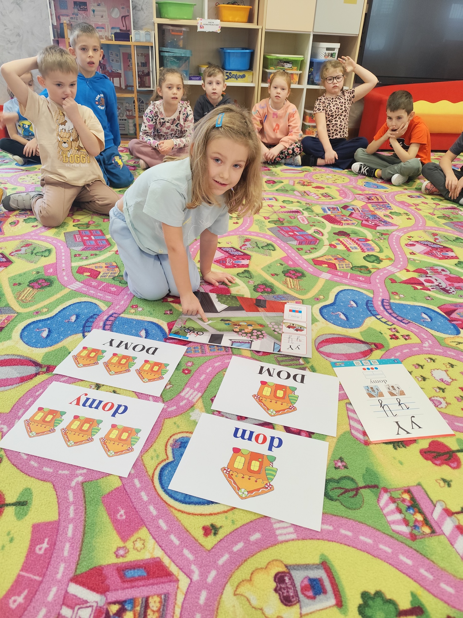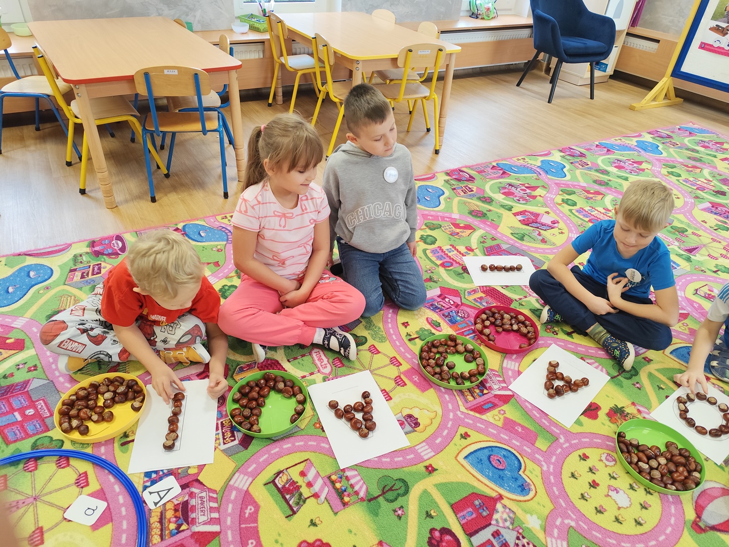 Sówki bardzo chętnie podejmują zabawy mające na celu poznawanie literek. Układają ich sylwety z różnorodnych materiałów np. przyrodniczych, segregują je, uczą się prawidłowej pisowni wykorzystując tablicę multimedialną. Ozdabiają sylwety liter wg własnego pomysłu. Podczas zabaw słuchowych wysłuchują głosek w nagłosie i wygłosie. Dzielą wyrazy na sylaby i głoski. Niektóre dzieci podejmują próby czytania sylab oraz prostych zdań.