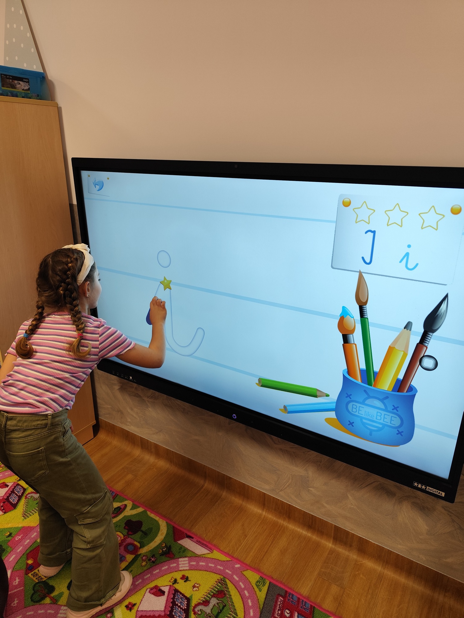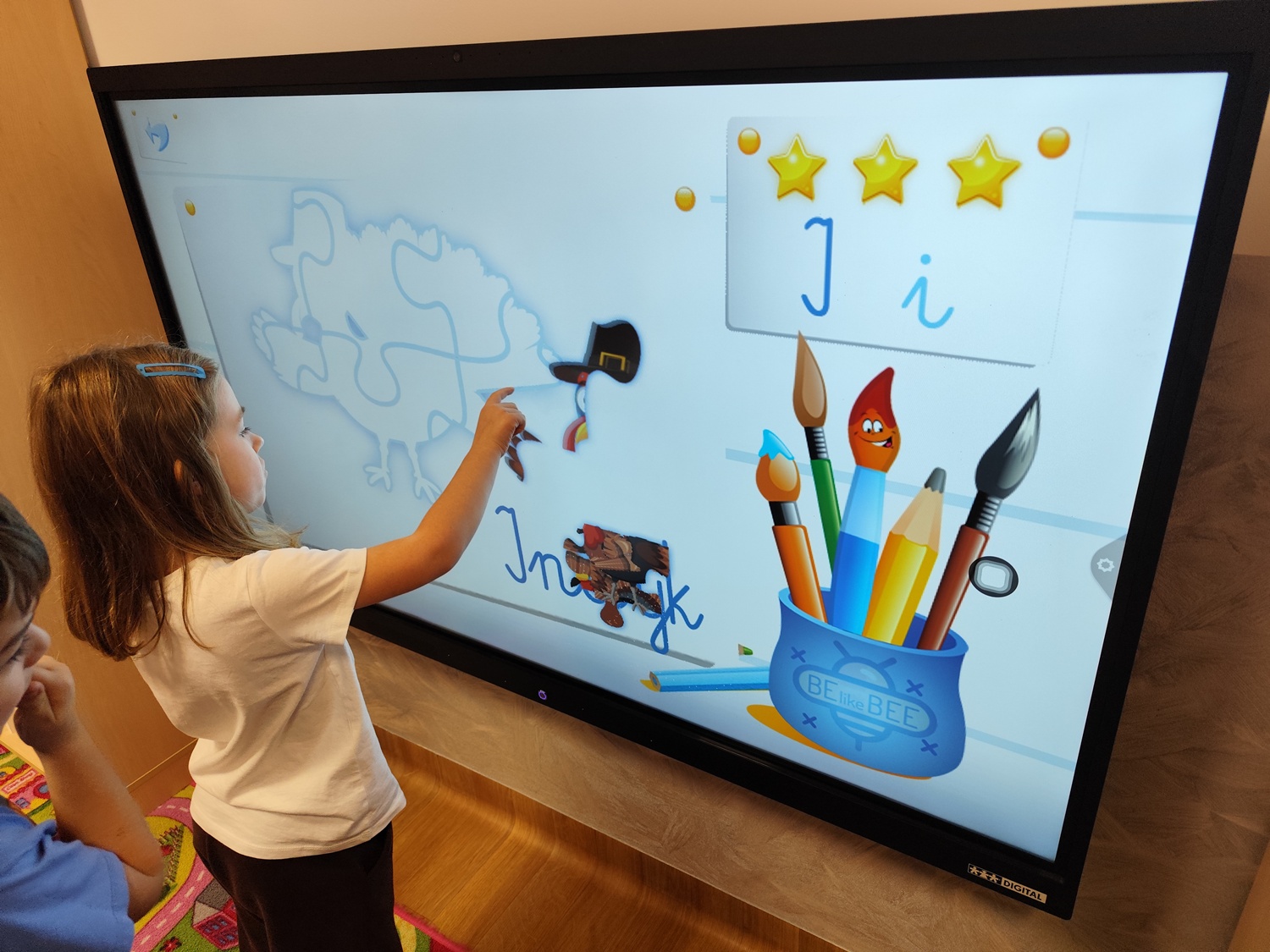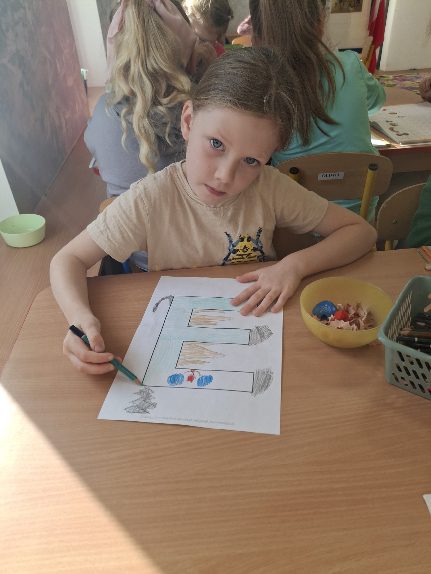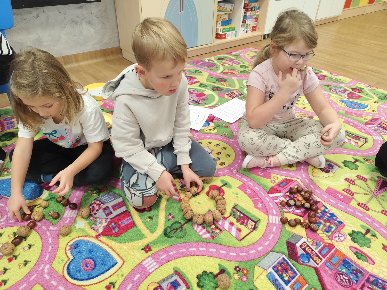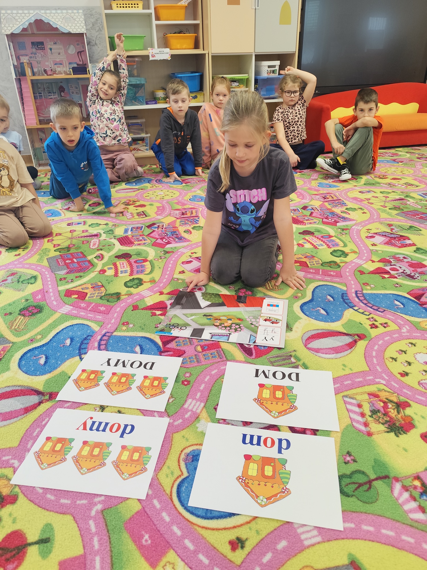 Sówki bardzo chętnie podejmują zabawy mające na celu poznawanie literek. Układają ich sylwety z różnorodnych materiałów np. przyrodniczych, segregują je, uczą się prawidłowej pisowni wykorzystując tablicę multimedialną. Ozdabiają sylwety liter wg własnego pomysłu. Podczas zabaw słuchowych wysłuchują głosek w nagłosie i wygłosie. Dzielą wyrazy na sylaby i głoski. Niektóre dzieci podejmują próby czytania sylab oraz prostych zdań.