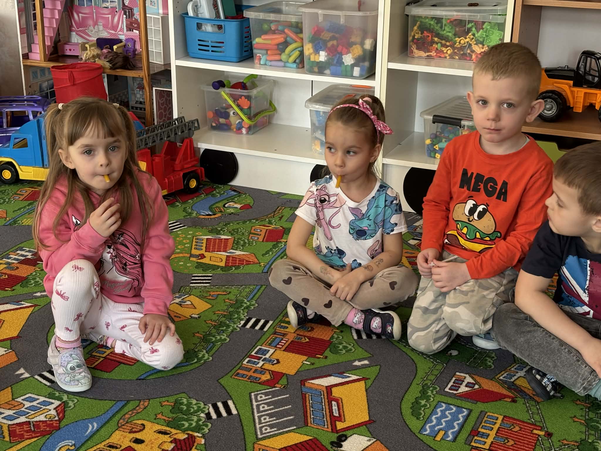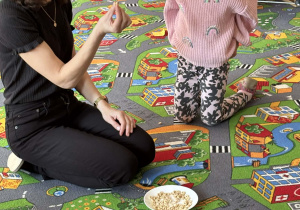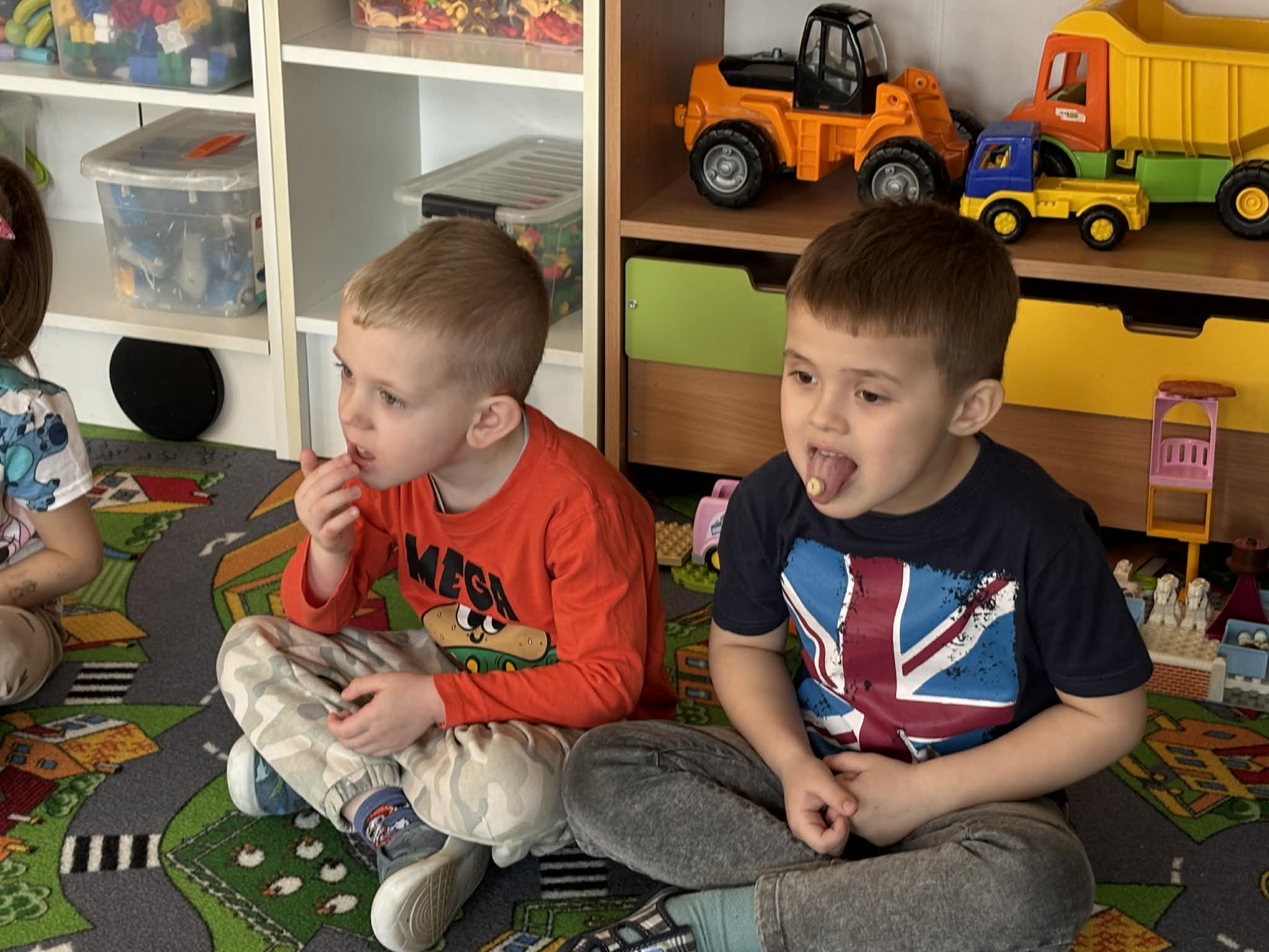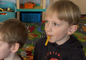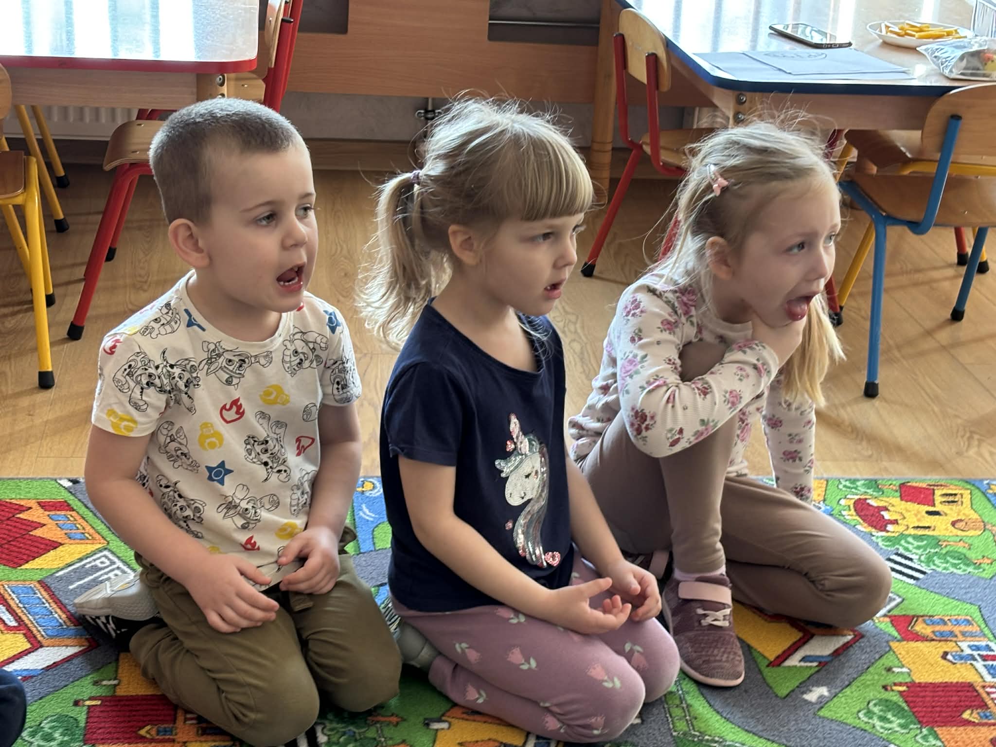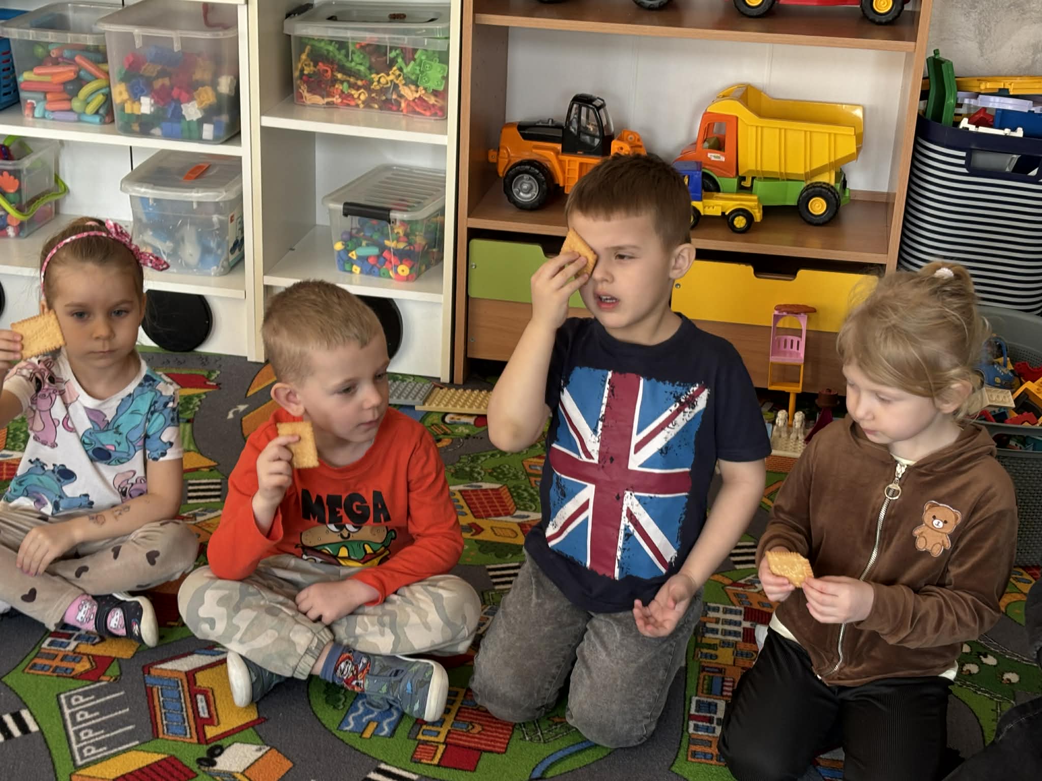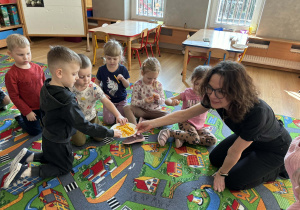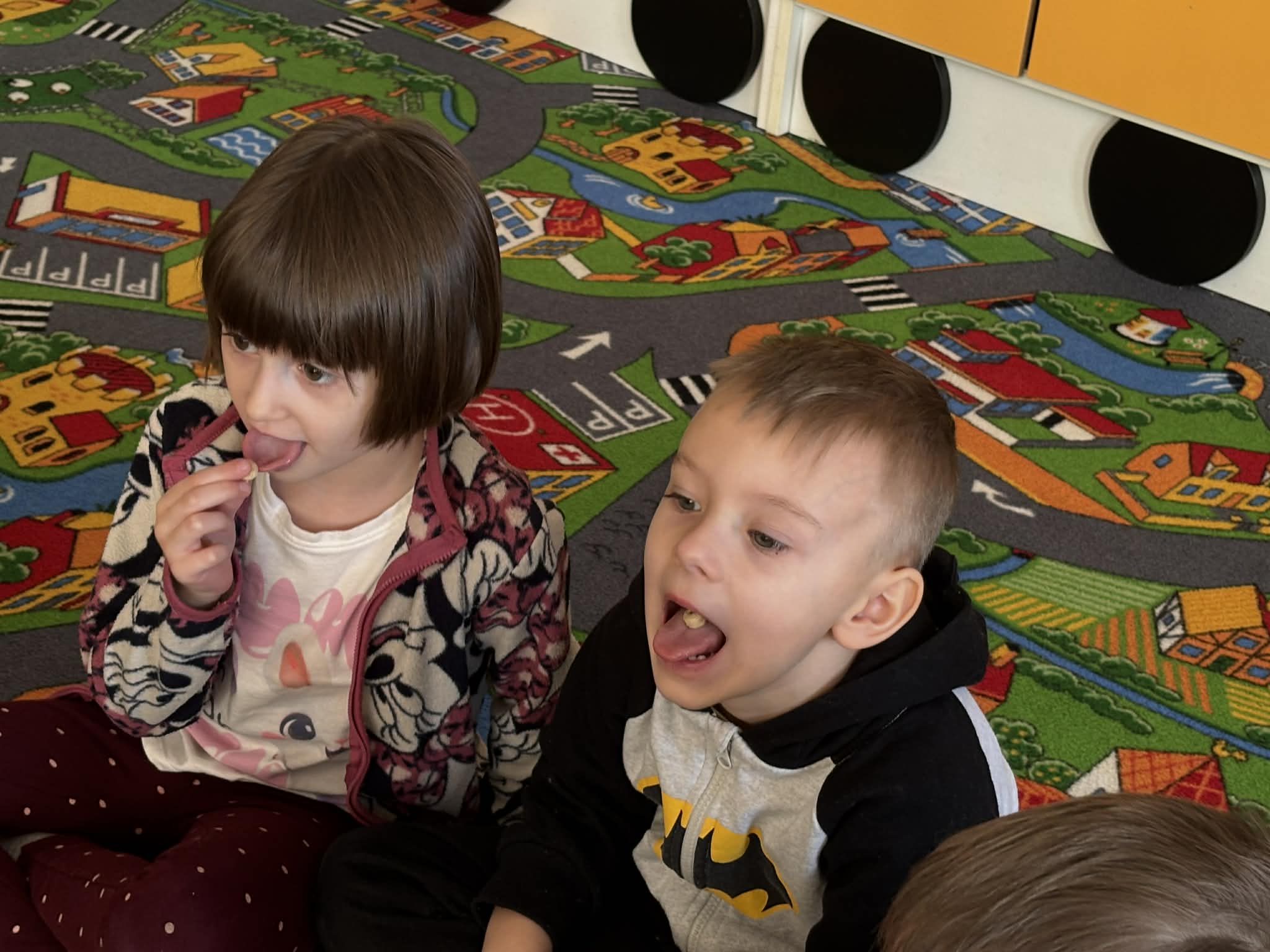Pani Magdalena Wolska, nasz przedszkolny logopeda, poprowadziła zajęcia profilaktyczne, które miały zachęcić dzieci do codziennych ćwiczeń. Zabawy, które zaproponowała dzieciom nie tylko były smaczne, ale również uświadomiły jaki wpływ ma prawidłowe gryzienie na rozwój naszej mowy. Nie zabrakło zabaw ruchowych, które są nieodzownym elementem rozwoju.