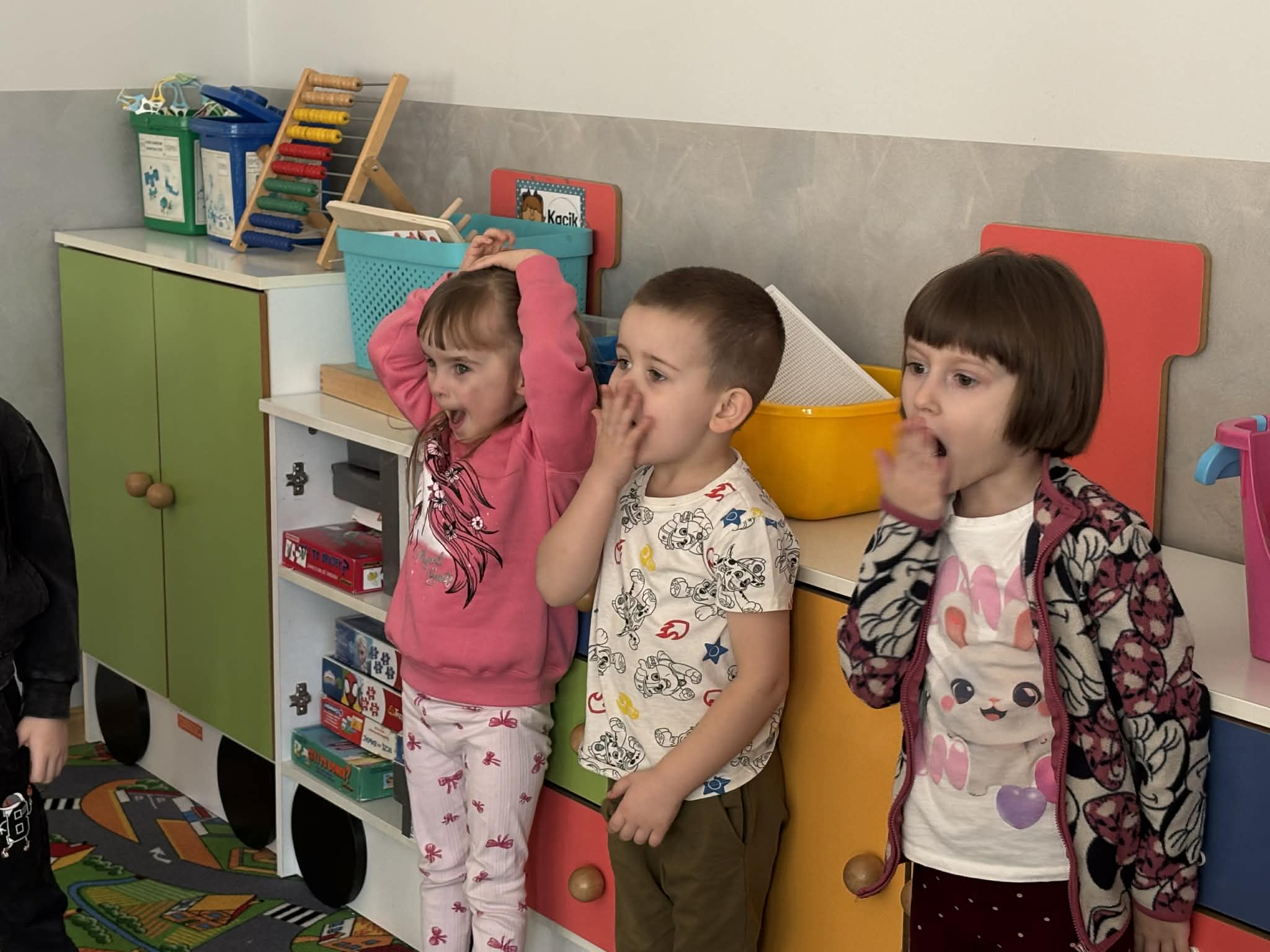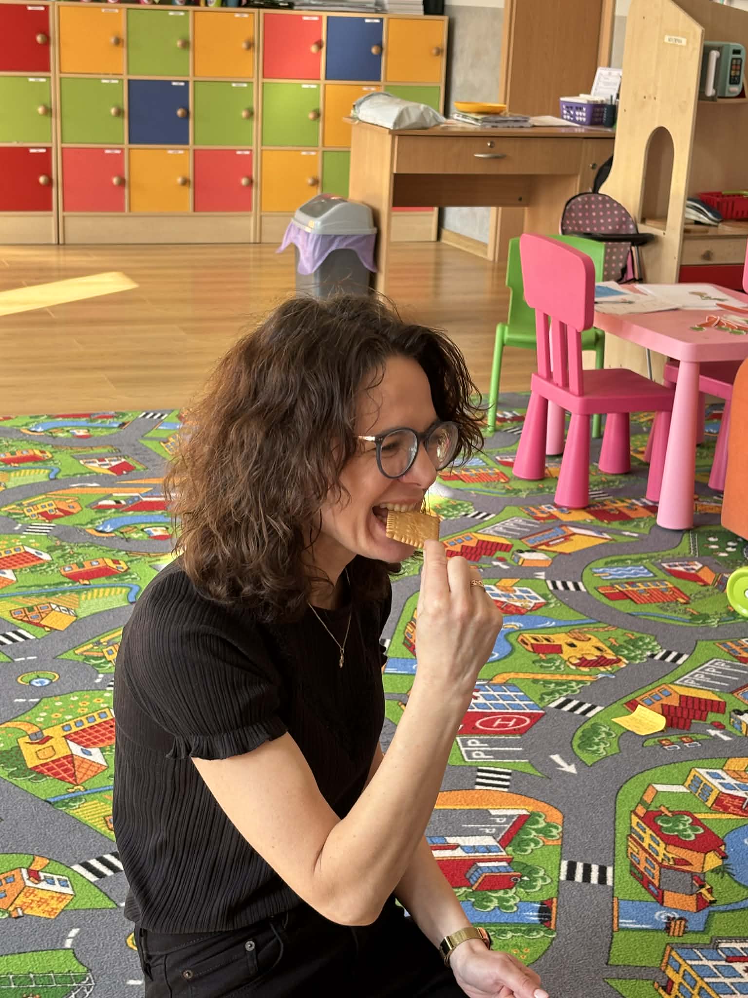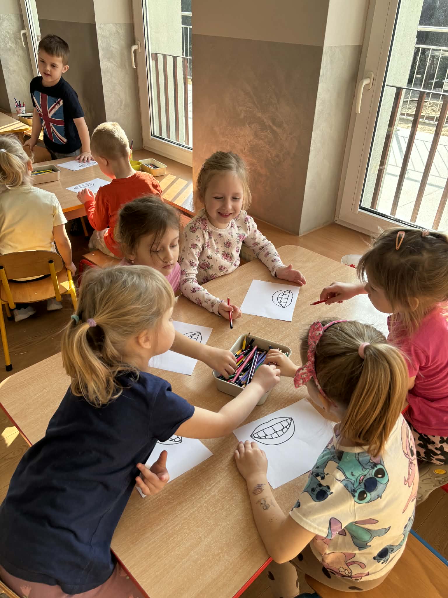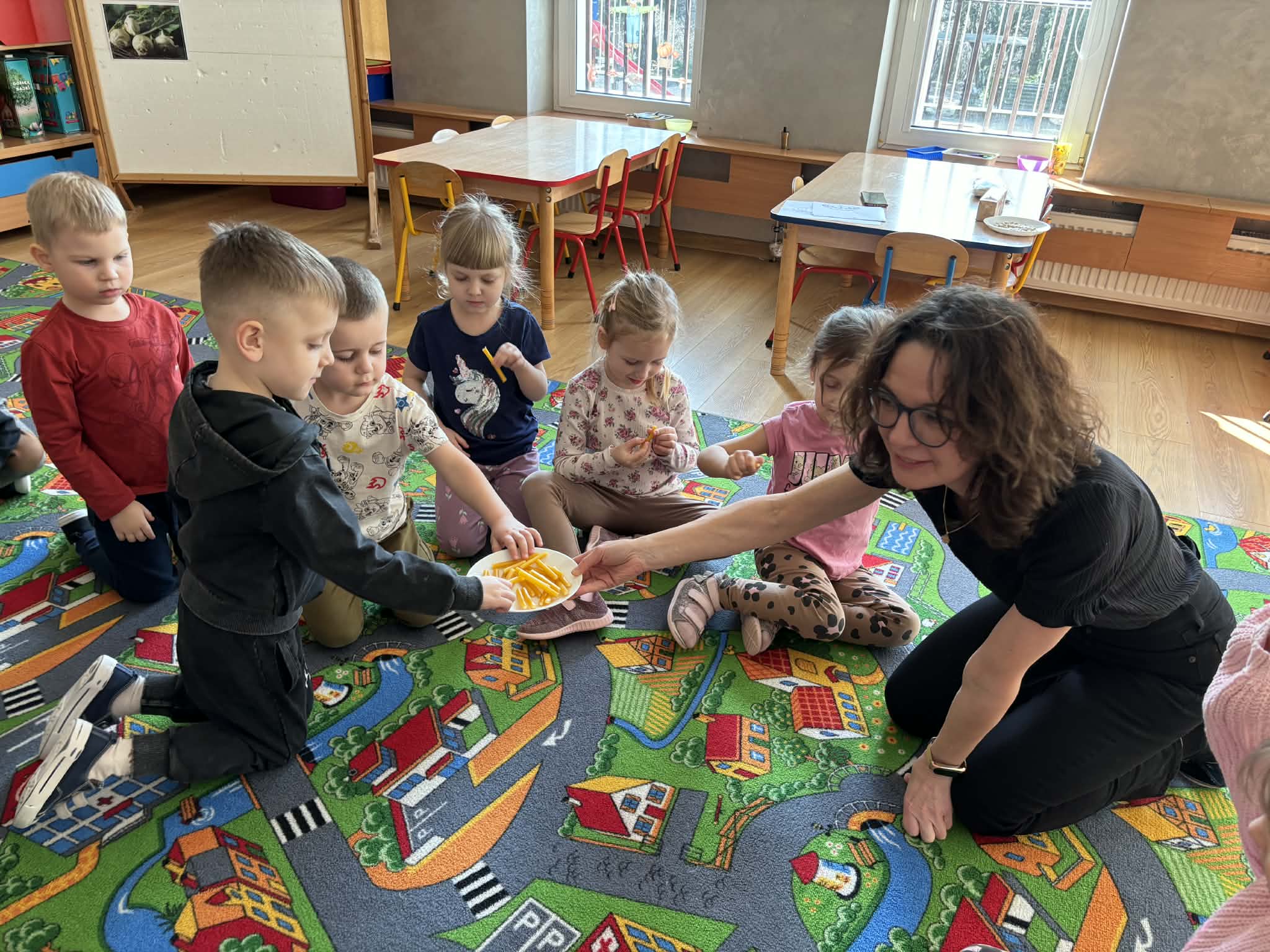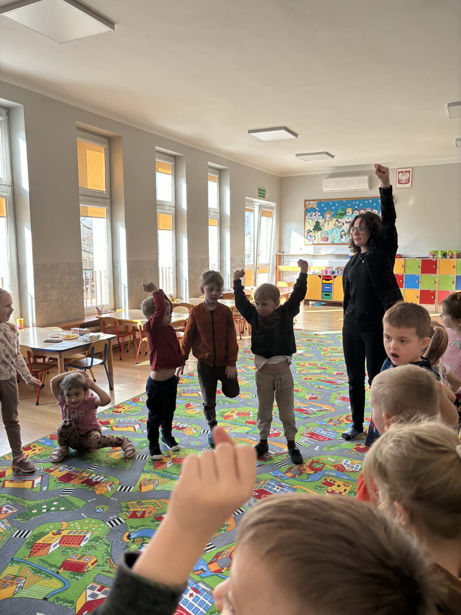 Pani Magdalena Wolska, nasz przedszkolny logopeda, poprowadziła zajęcia profilaktyczne, które miały zachęcić dzieci do codziennych ćwiczeń. Zabawy, które zaproponowała dzieciom nie tylko były smaczne, ale również uświadomiły jaki wpływ ma prawidłowe gryzienie na rozwój naszej mowy. Nie zabrakło zabaw ruchowych, które są nieodzownym elementem rozwoju.