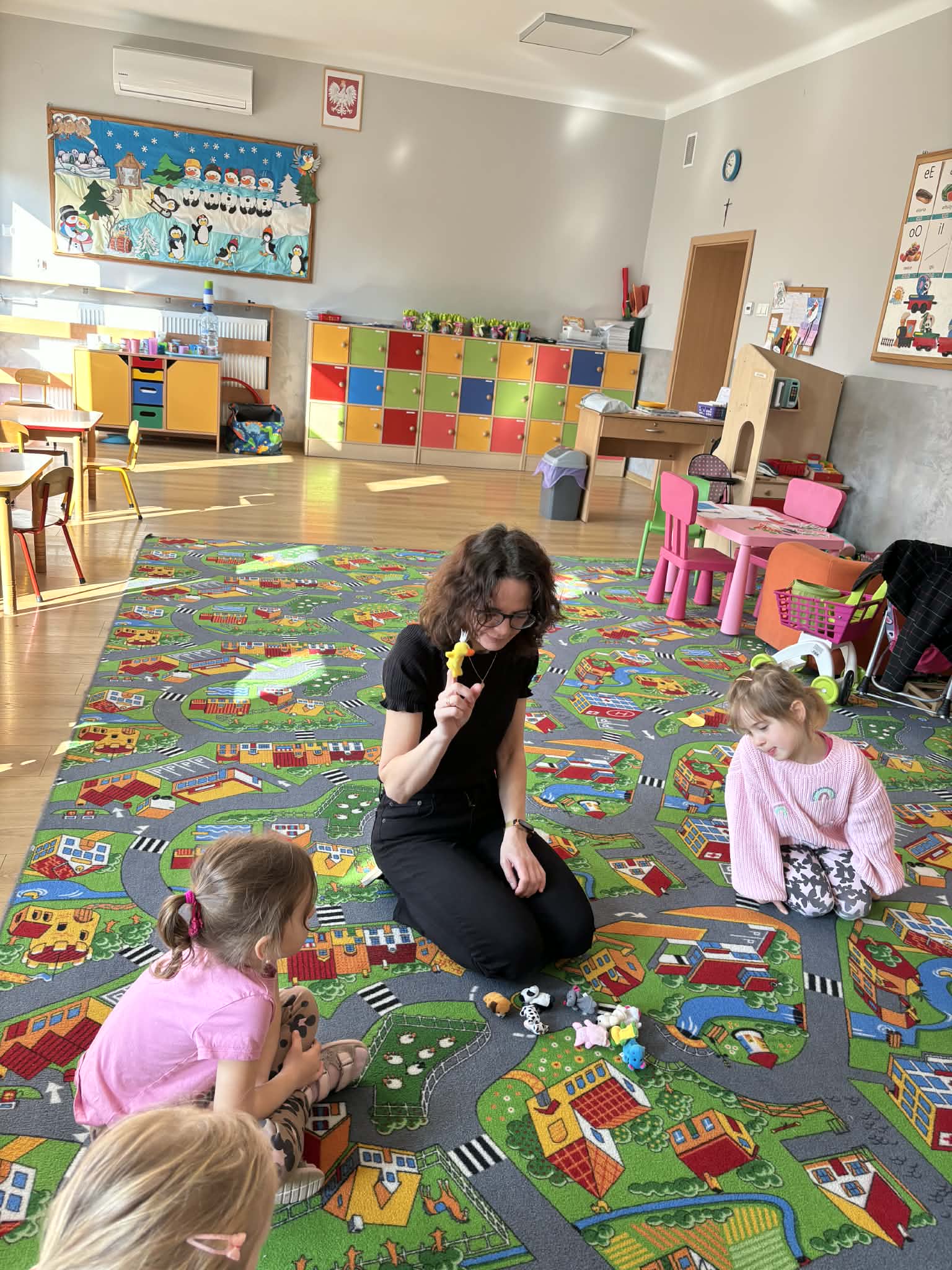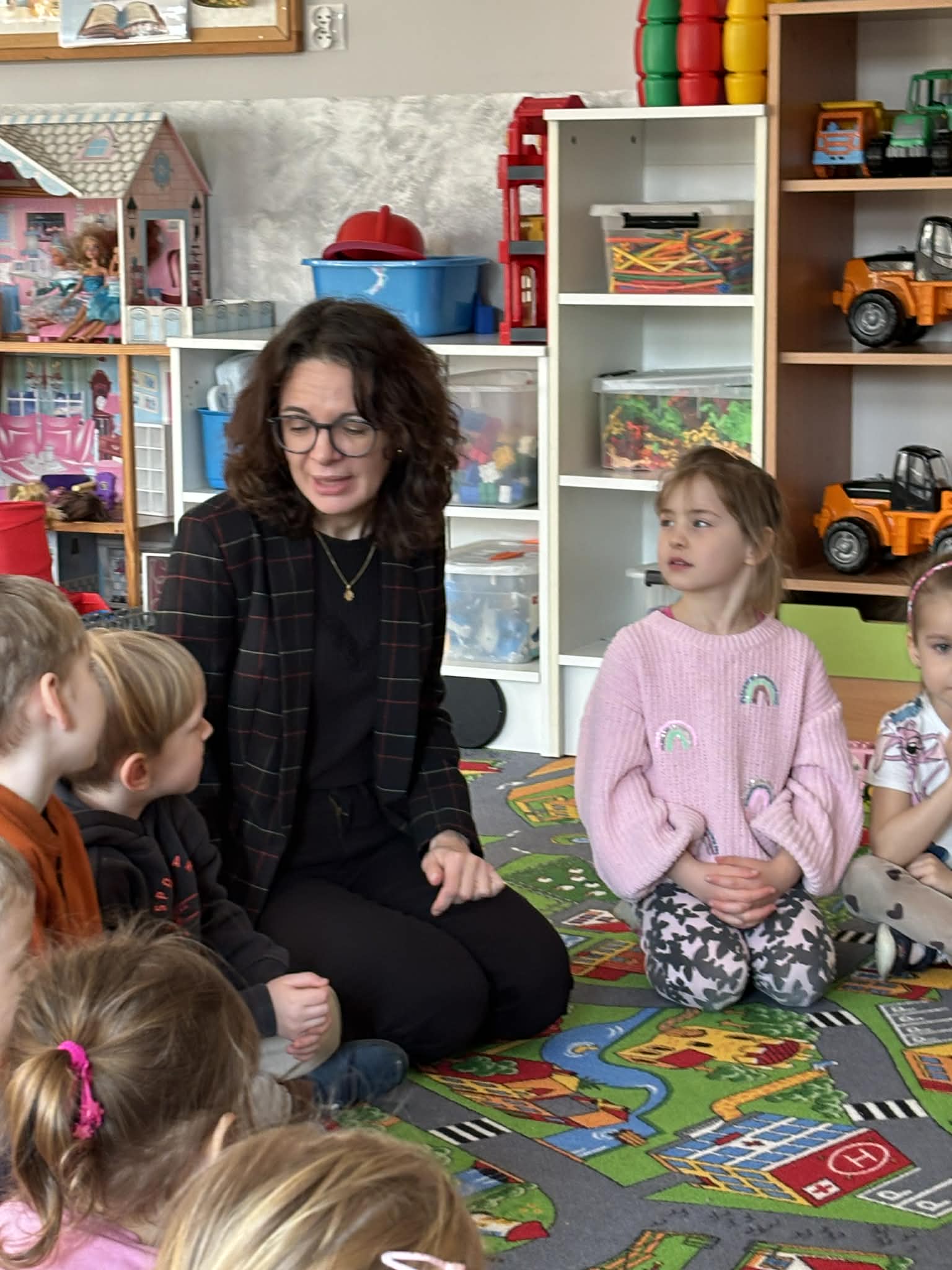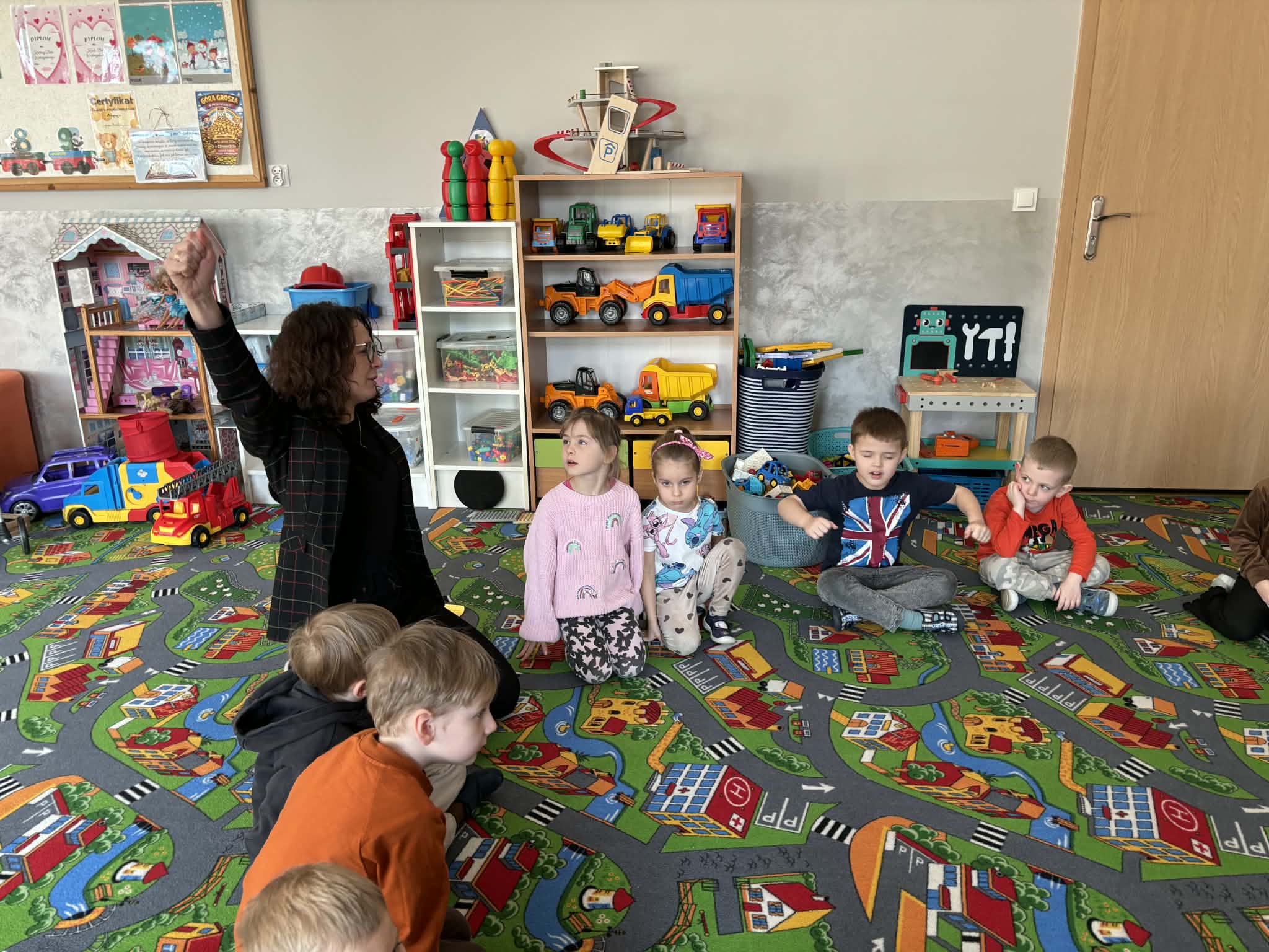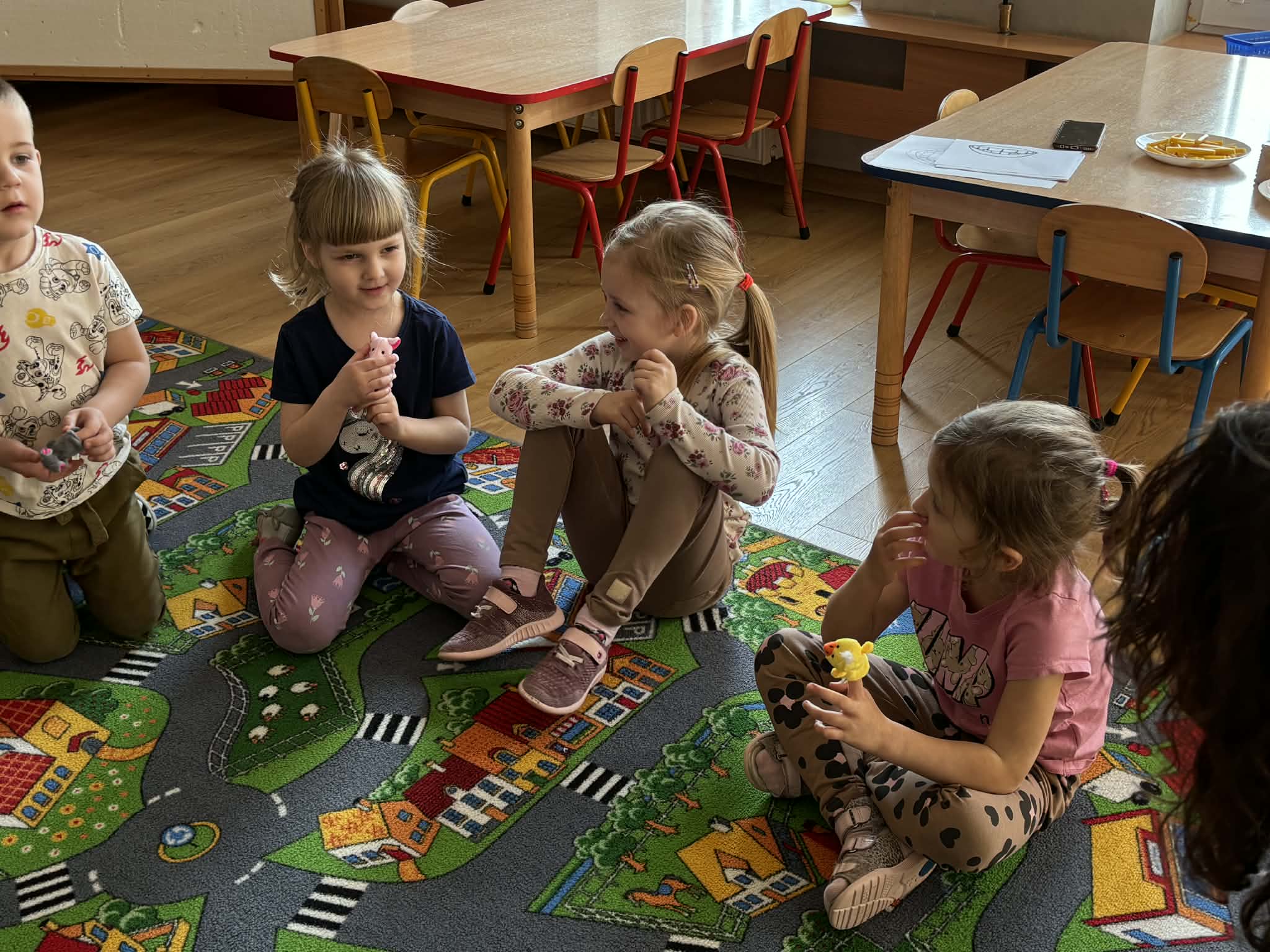 Pani Magdalena Wolska, nasz przedszkolny logopeda, poprowadziła zajęcia profilaktyczne, które miały zachęcić dzieci do codziennych ćwiczeń. Zabawy, które zaproponowała dzieciom nie tylko były smaczne, ale również uświadomiły jaki wpływ ma prawidłowe gryzienie na rozwój naszej mowy. Nie zabrakło zabaw ruchowych, które są nieodzownym elementem rozwoju.