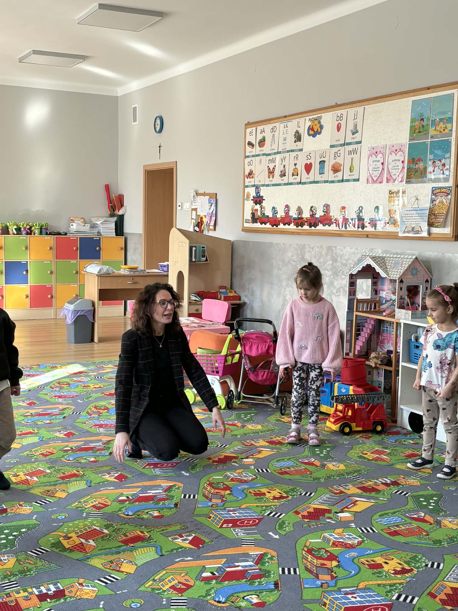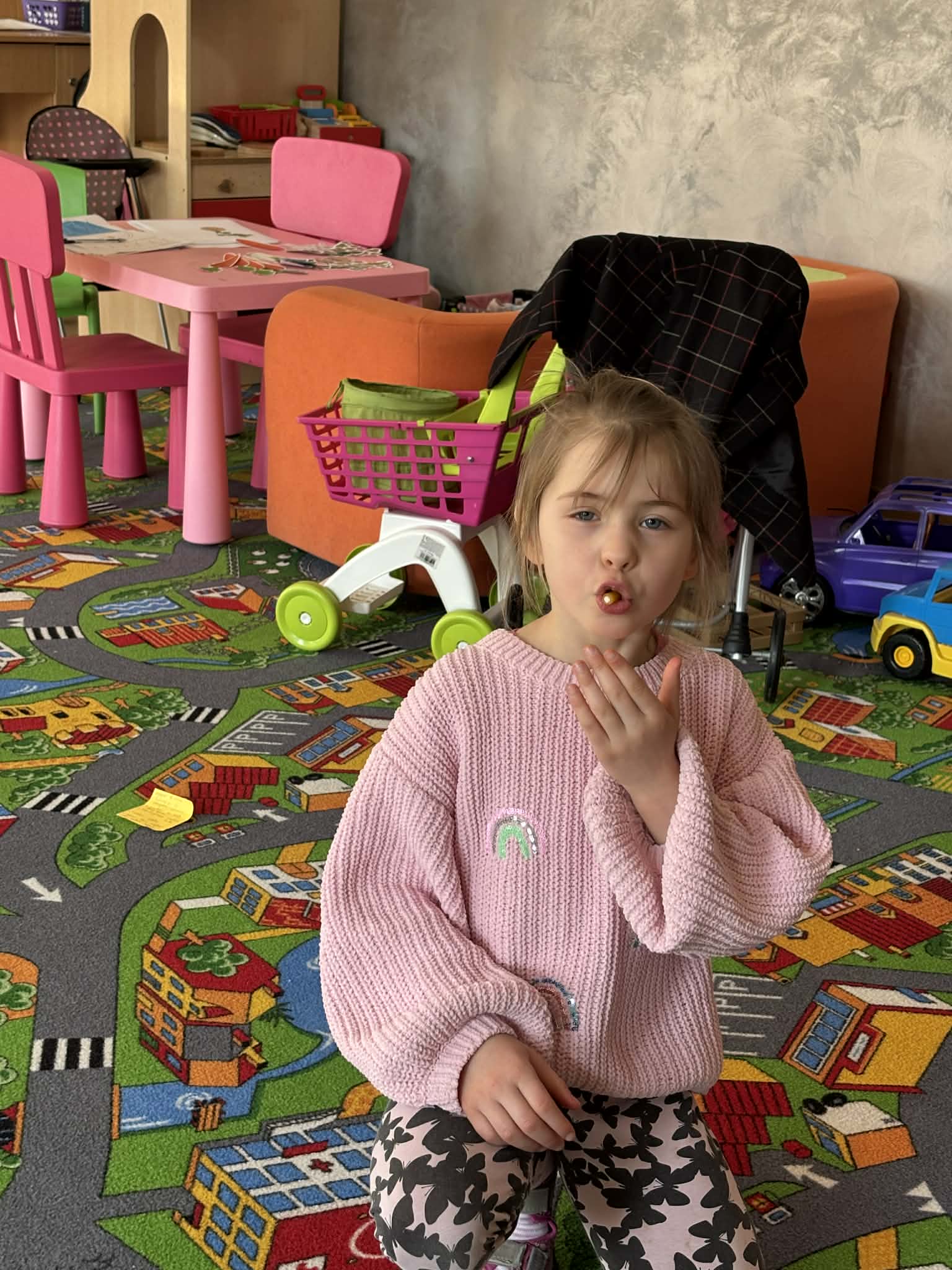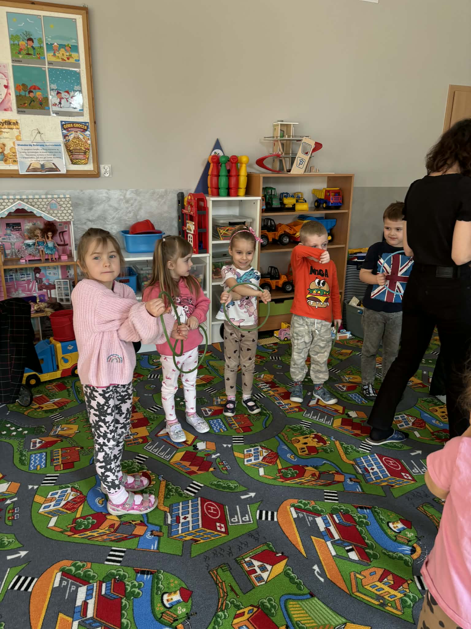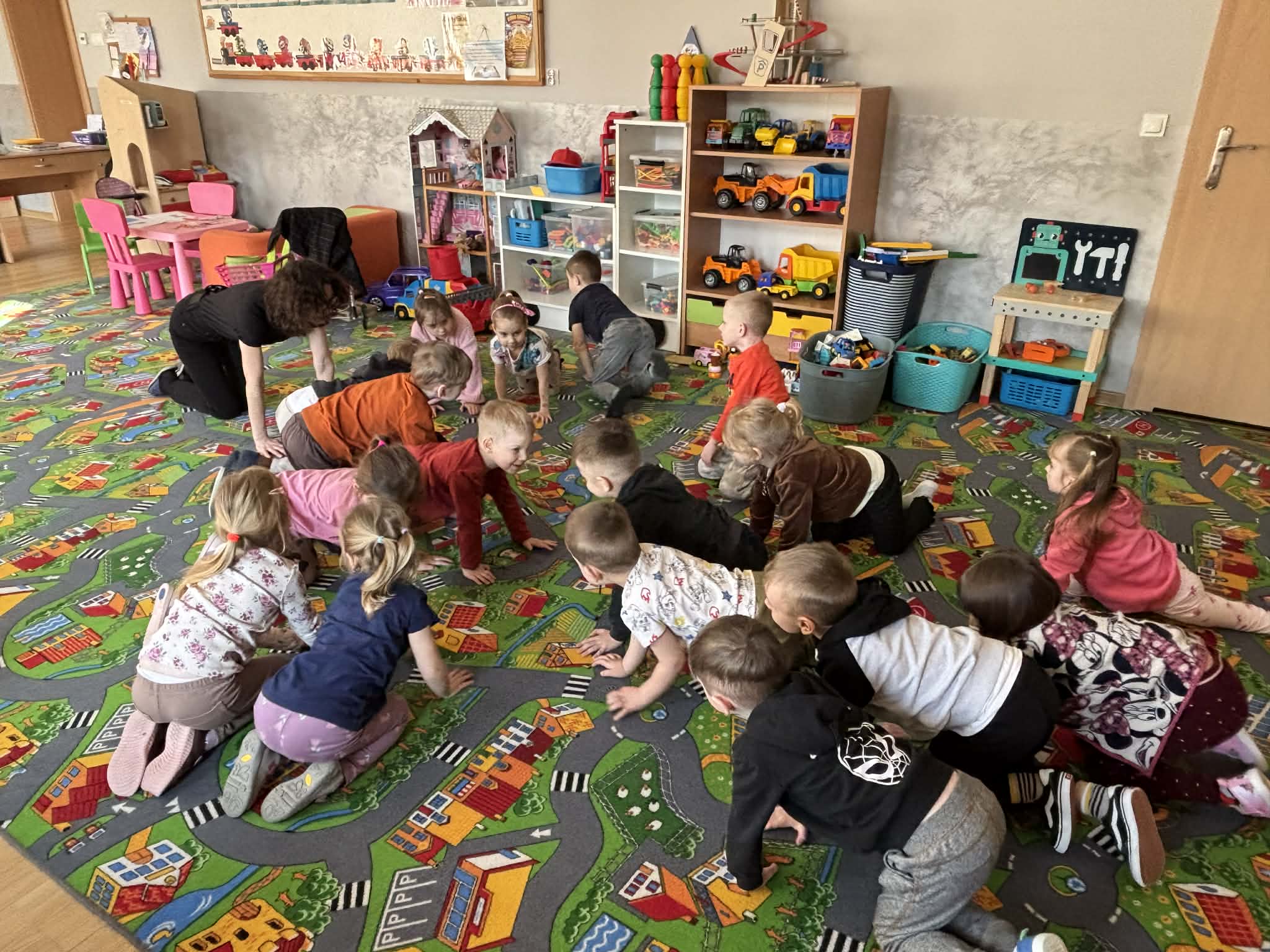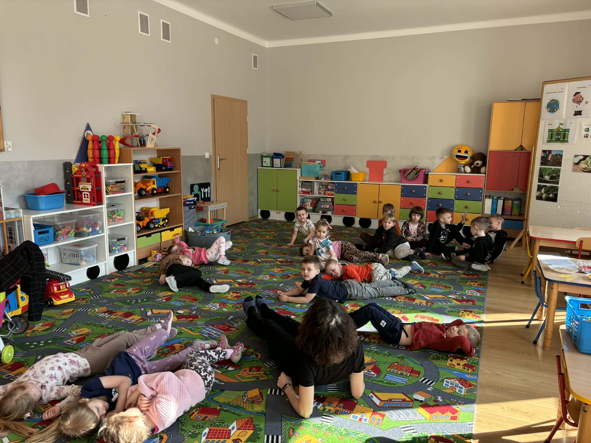 Pani Magdalena Wolska, nasz przedszkolny logopeda, poprowadziła zajęcia profilaktyczne, które miały zachęcić dzieci do codziennych ćwiczeń. Zabawy, które zaproponowała dzieciom nie tylko były smaczne, ale również uświadomiły jaki wpływ ma prawidłowe gryzienie na rozwój naszej mowy. Nie zabrakło zabaw ruchowych, które są nieodzownym elementem rozwoju.