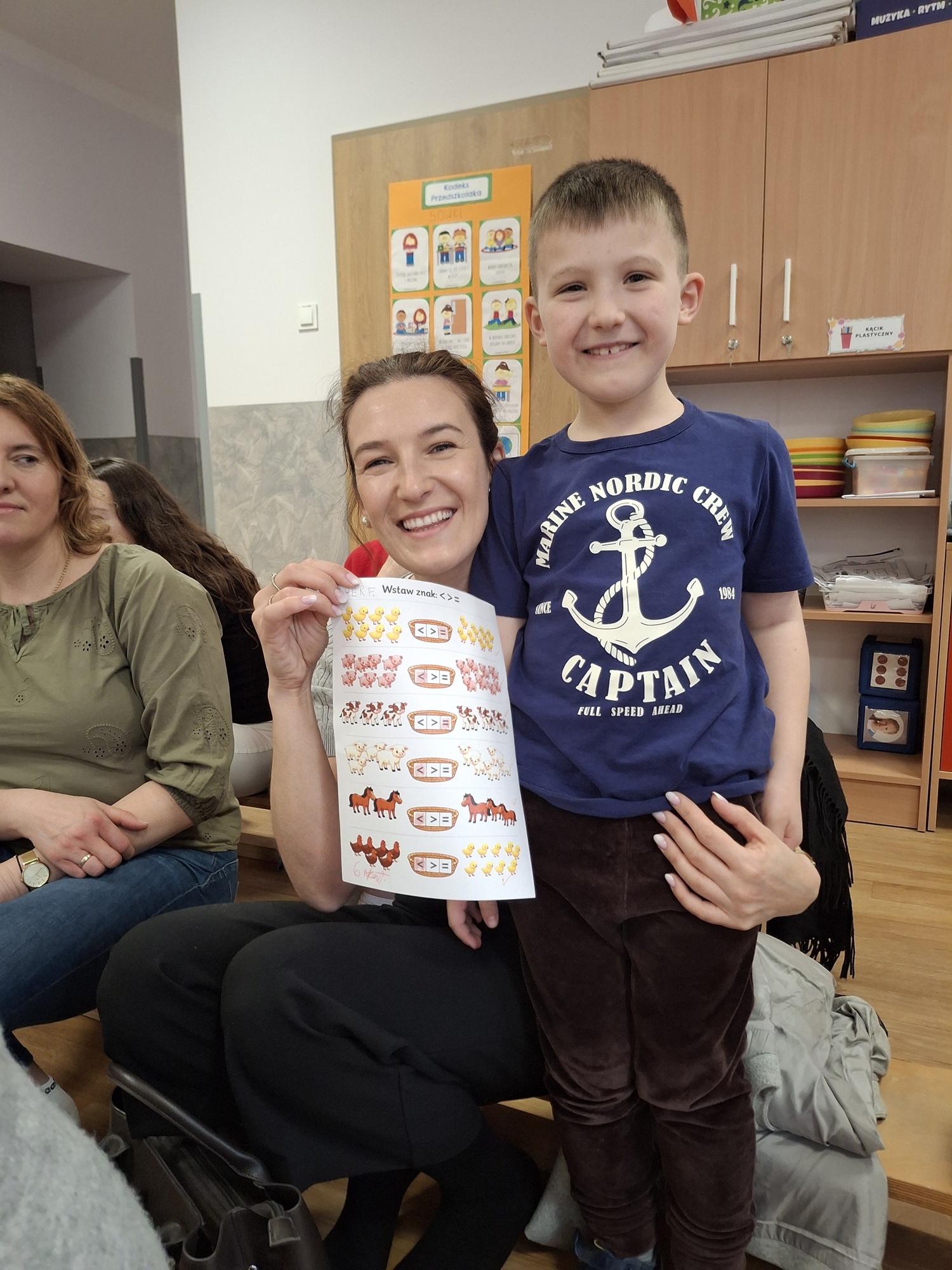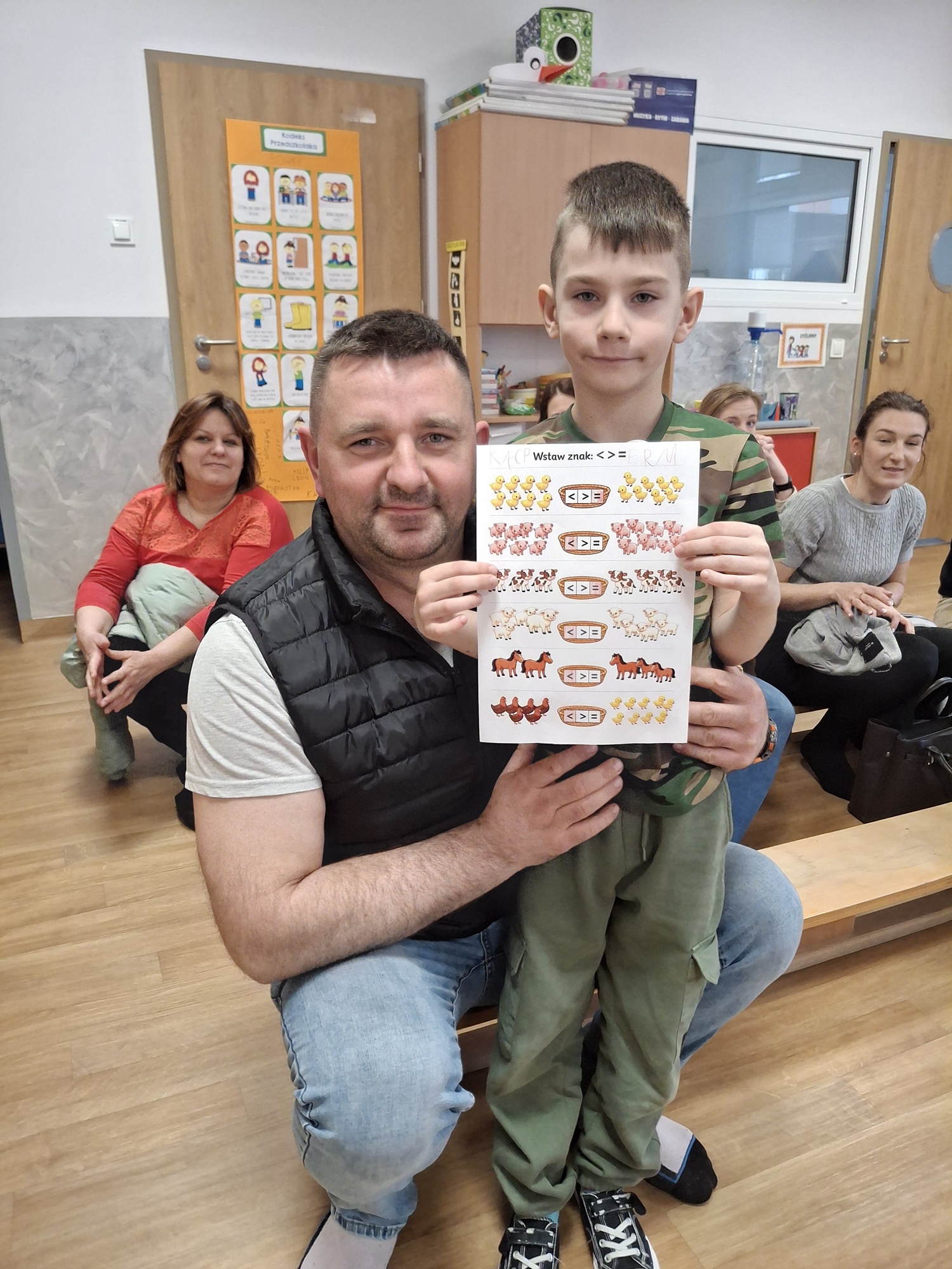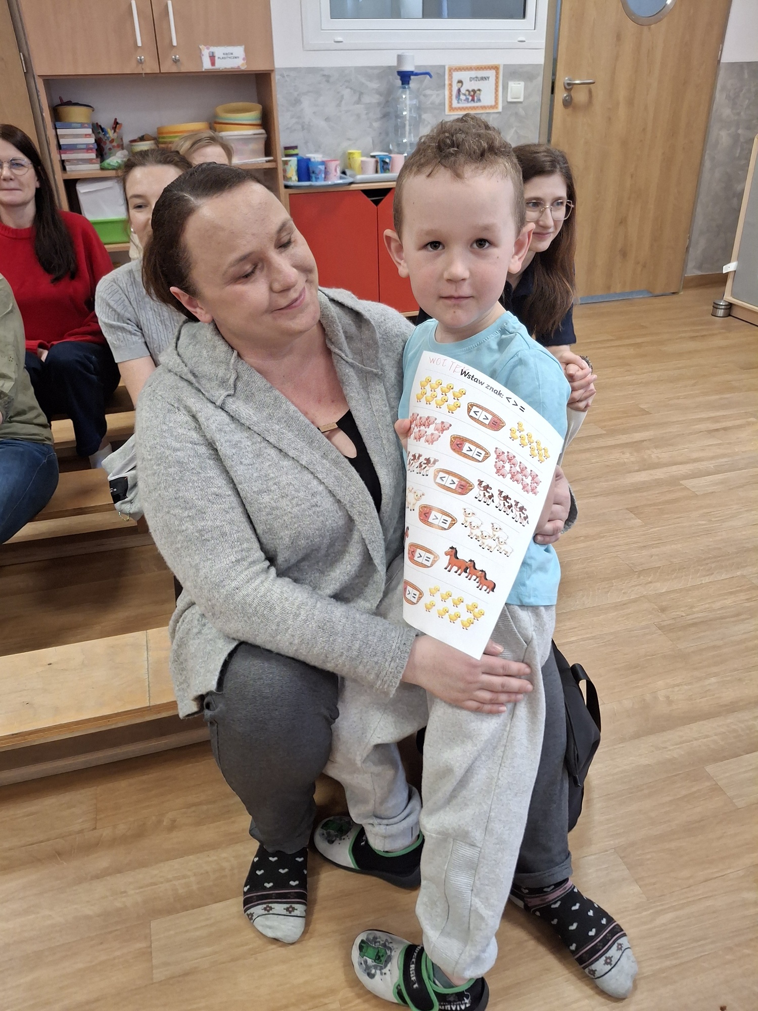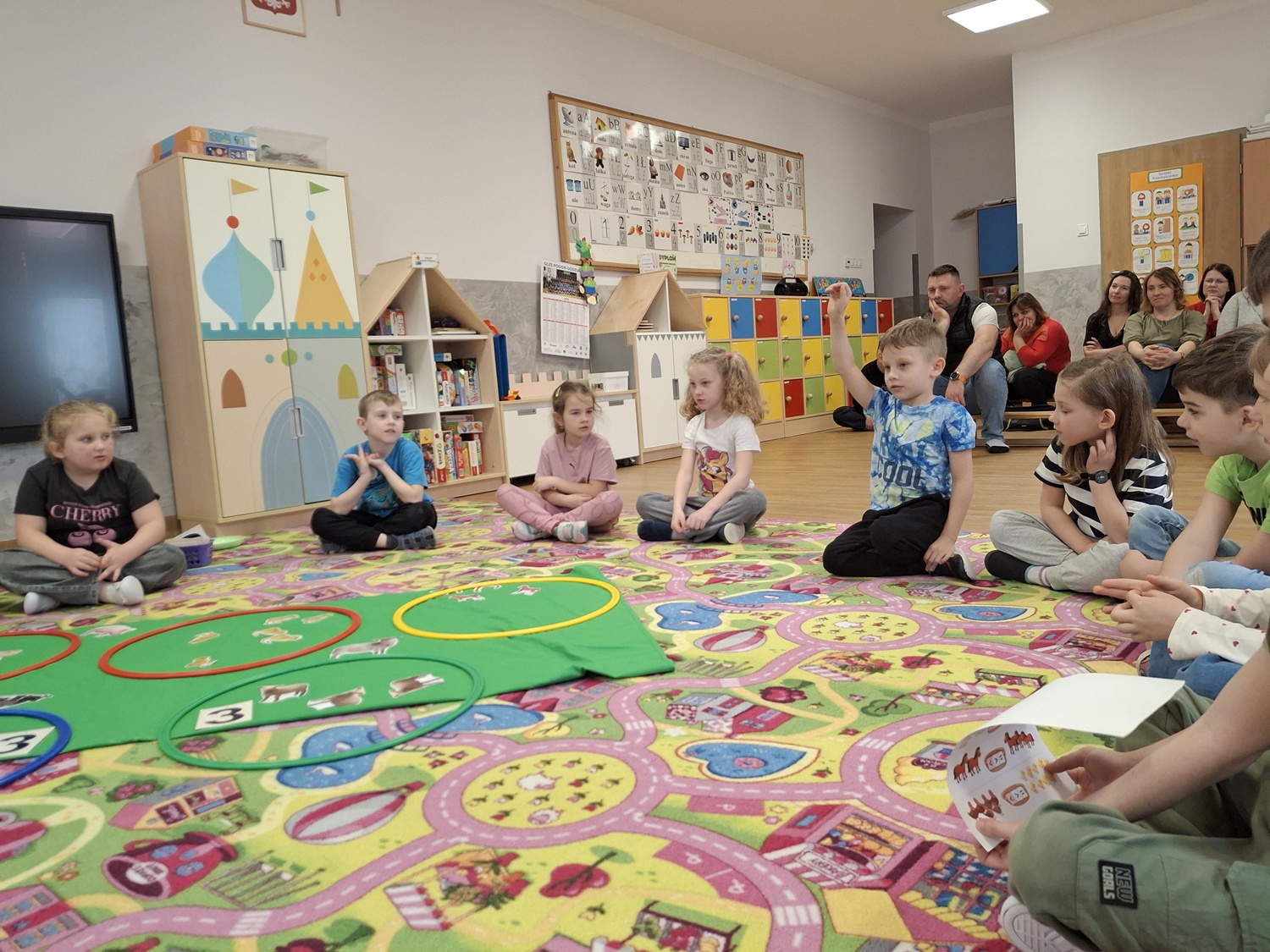 26 marca 2026r., w grupie 6- letniej odbyło się zajęcie otwarte dla rodziców, które poprowadziła pani Patrycja Kwiatkowska. Rodzice mieli możliwość obserwowania aktywności swoich pociech podczas zajęć, koncentracji uwagi oraz zasobu wiadomości i umiejętności. Temat zajęcia to: „Znajdź mamę i jej dziecko”. Przedszkolaki rozpoznawały głosy wydawane przez niektóre zwierzęta, dopasowywały zwierzątka młode do ich mama; utrwalały cyfry, porównywały liczebność zbiorów z zastosowaniem znaków >,<, =. Uczestniczyły w zabawie ruchowej i wykonywały zadania na karcie pracy. Dzieci chętnie brały udział w zajęciach, poprawnie wykonywały zadania. Obecność naszych gości wspaniale motywowała przedszkolaków do współpracy, zajęcia przebiegły w miłej i serdecznej atmosferze. Serdecznie dziękujemy rodzicom za przybycie.