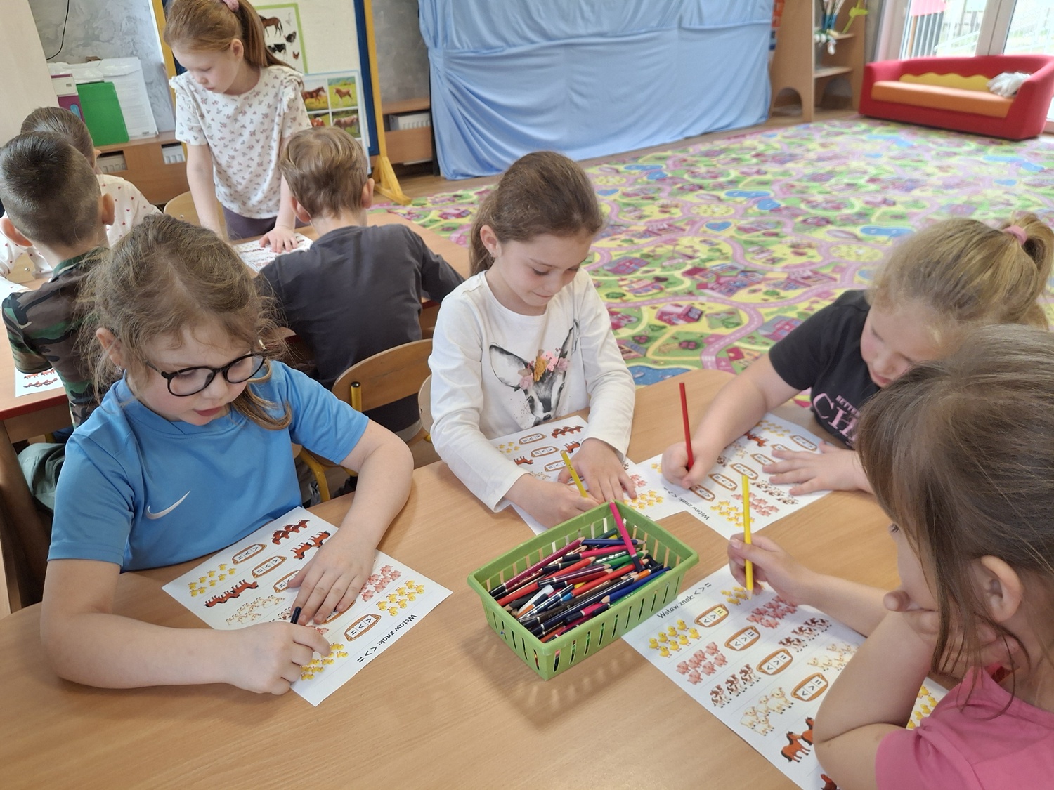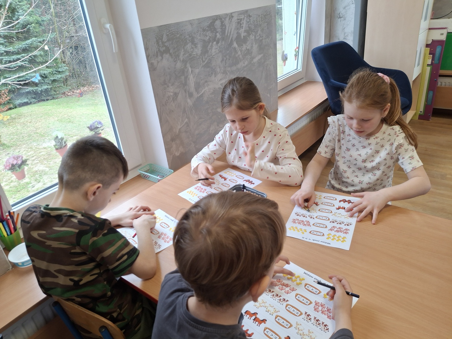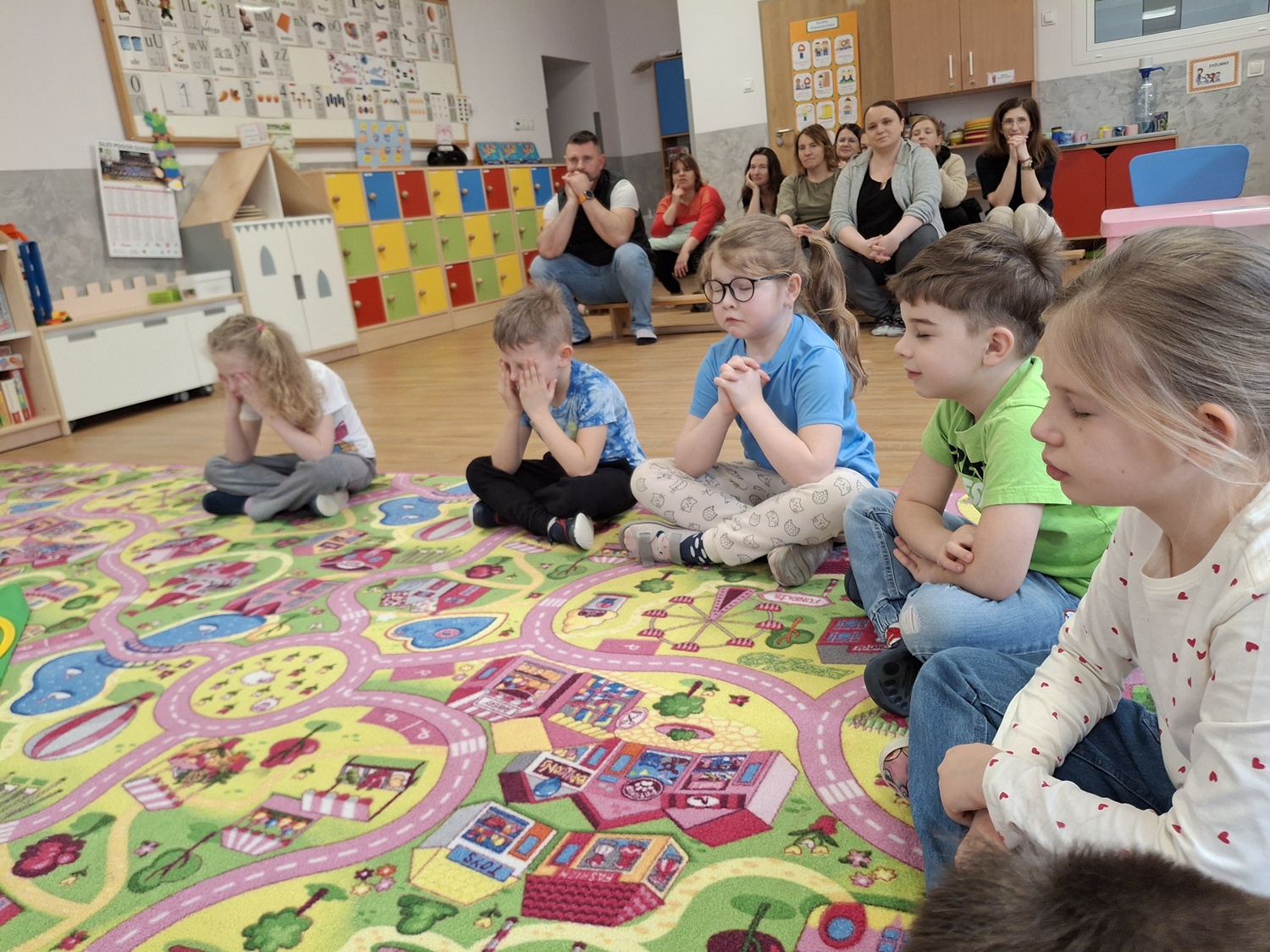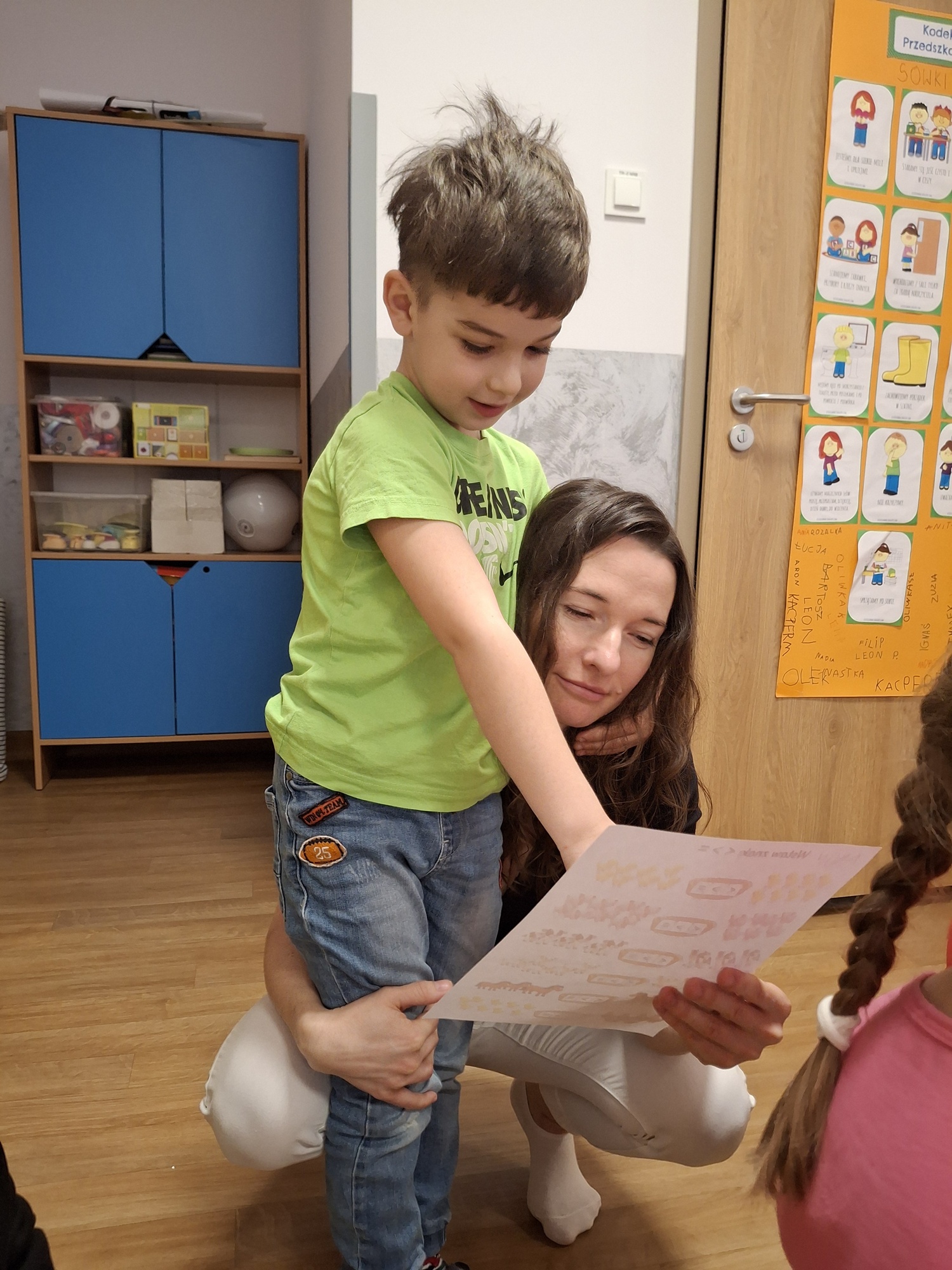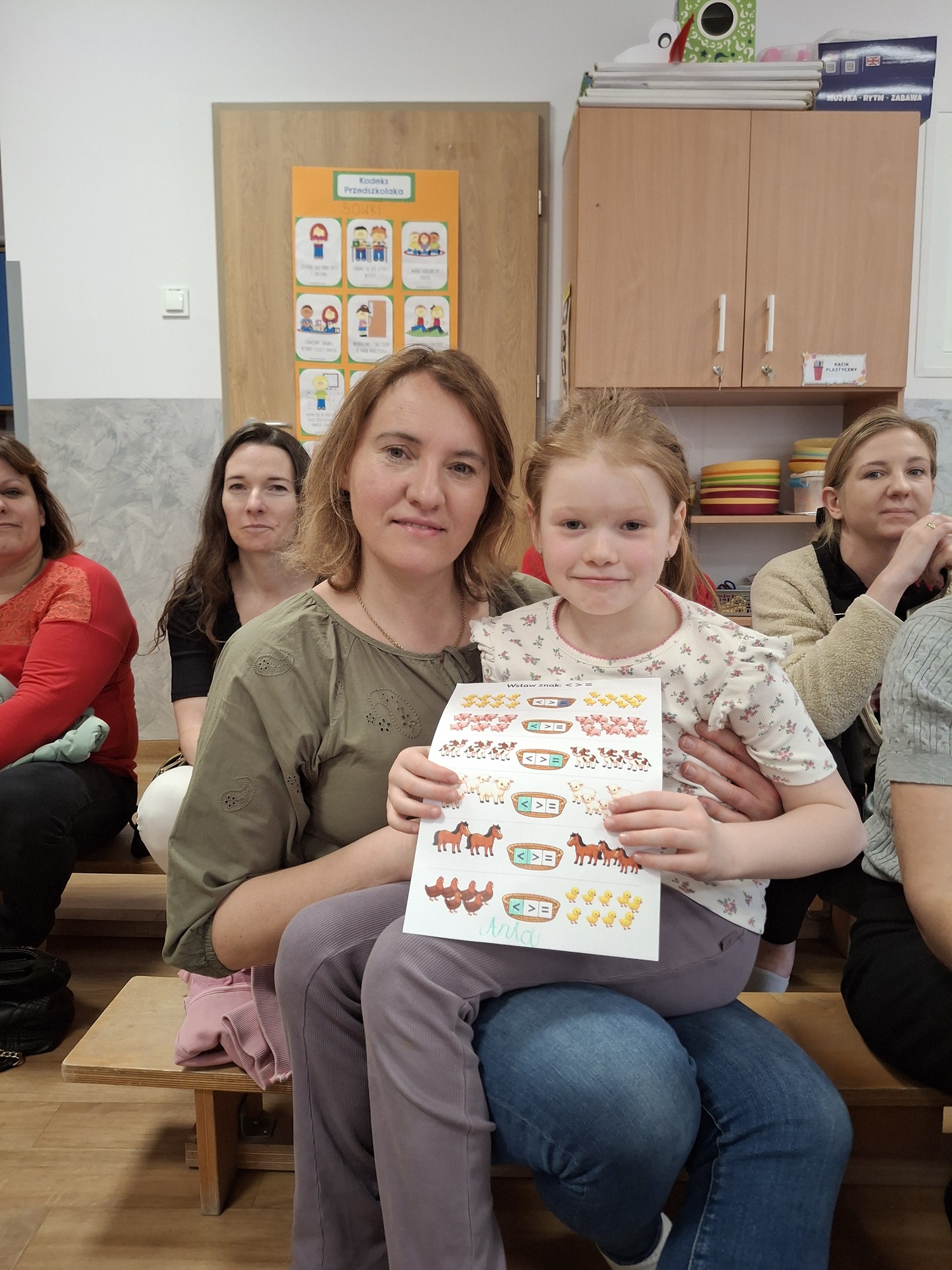26 marca 2026r., w grupie 6- letniej odbyło się zajęcie otwarte dla rodziców, które poprowadziła pani Patrycja Kwiatkowska. Rodzice mieli możliwość obserwowania aktywności swoich pociech podczas zajęć, koncentracji uwagi oraz zasobu wiadomości i umiejętności. Temat zajęcia to: „Znajdź mamę i jej dziecko”. Przedszkolaki rozpoznawały głosy wydawane przez niektóre zwierzęta, dopasowywały zwierzątka młode do ich mama; utrwalały cyfry, porównywały liczebność zbiorów z zastosowaniem znaków >,<, =. Uczestniczyły w zabawie ruchowej i wykonywały zadania na karcie pracy. Dzieci chętnie brały udział w zajęciach, poprawnie wykonywały zadania. Obecność naszych gości wspaniale motywowała przedszkolaków do współpracy, zajęcia przebiegły w miłej i serdecznej atmosferze. Serdecznie dziękujemy rodzicom za przybycie.