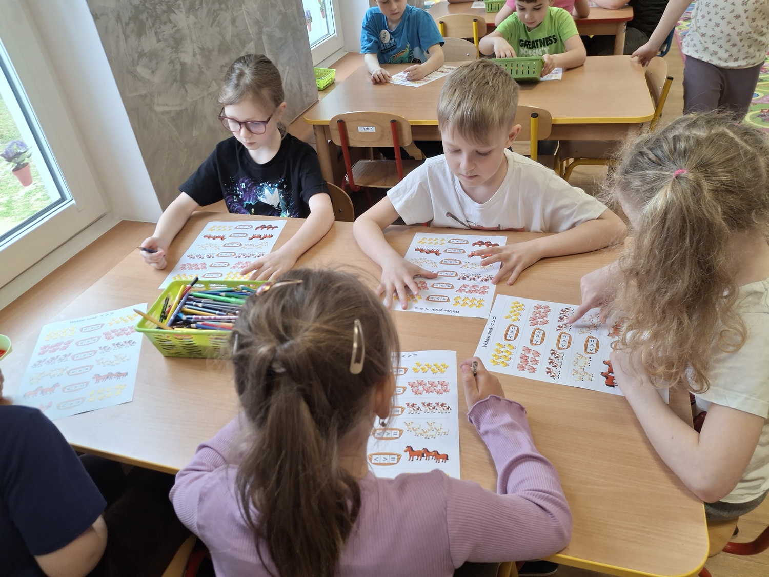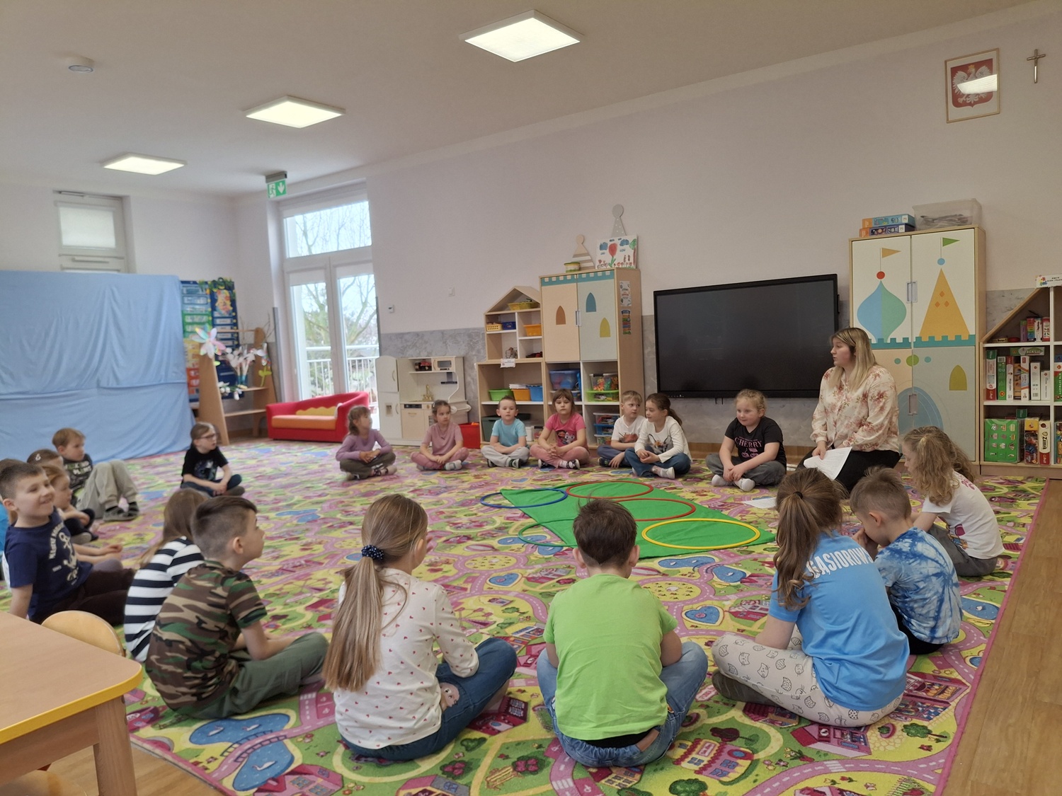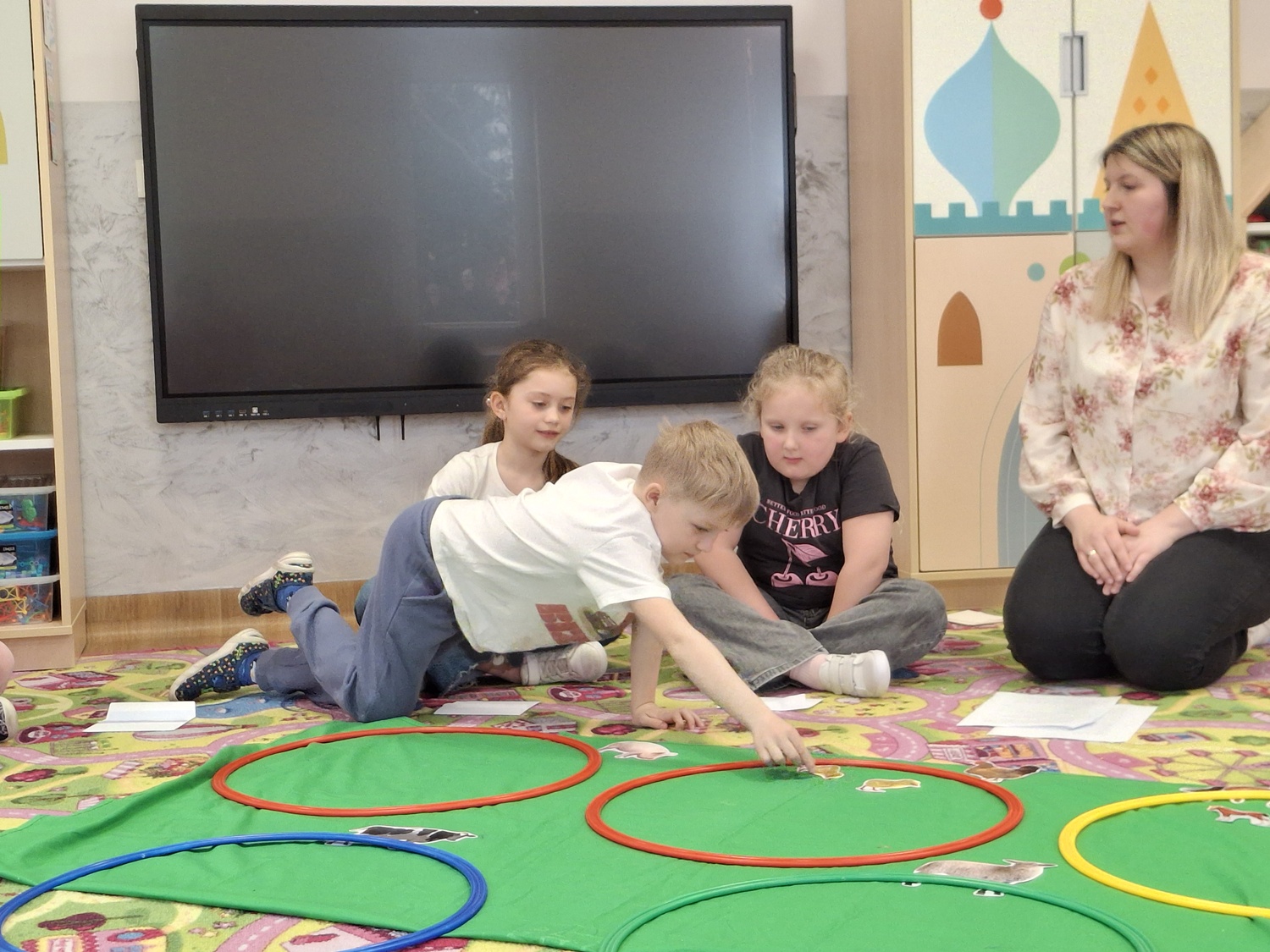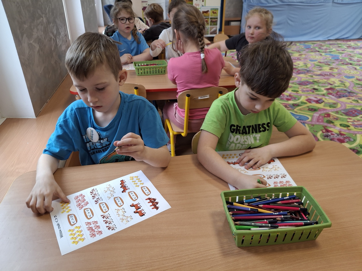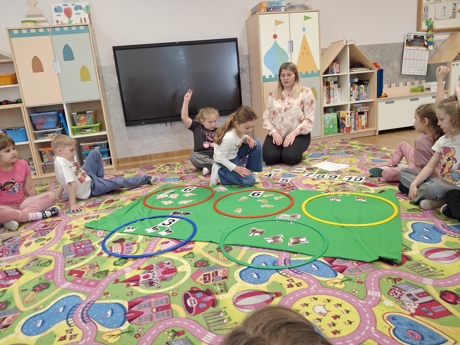 26 marca 2026r., w grupie 6- letniej odbyło się zajęcie otwarte dla rodziców, które poprowadziła pani Patrycja Kwiatkowska. Rodzice mieli możliwość obserwowania aktywności swoich pociech podczas zajęć, koncentracji uwagi oraz zasobu wiadomości i umiejętności. Temat zajęcia to: „Znajdź mamę i jej dziecko”. Przedszkolaki rozpoznawały głosy wydawane przez niektóre zwierzęta, dopasowywały zwierzątka młode do ich mama; utrwalały cyfry, porównywały liczebność zbiorów z zastosowaniem znaków >,<, =. Uczestniczyły w zabawie ruchowej i wykonywały zadania na karcie pracy. Dzieci chętnie brały udział w zajęciach, poprawnie wykonywały zadania. Obecność naszych gości wspaniale motywowała przedszkolaków do współpracy, zajęcia przebiegły w miłej i serdecznej atmosferze. Serdecznie dziękujemy rodzicom za przybycie.