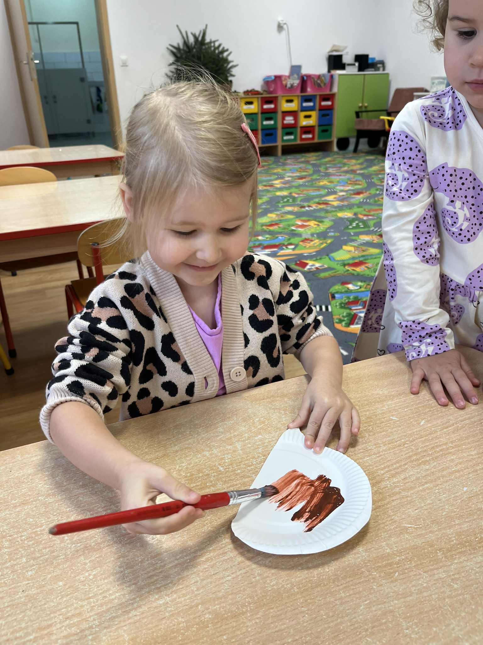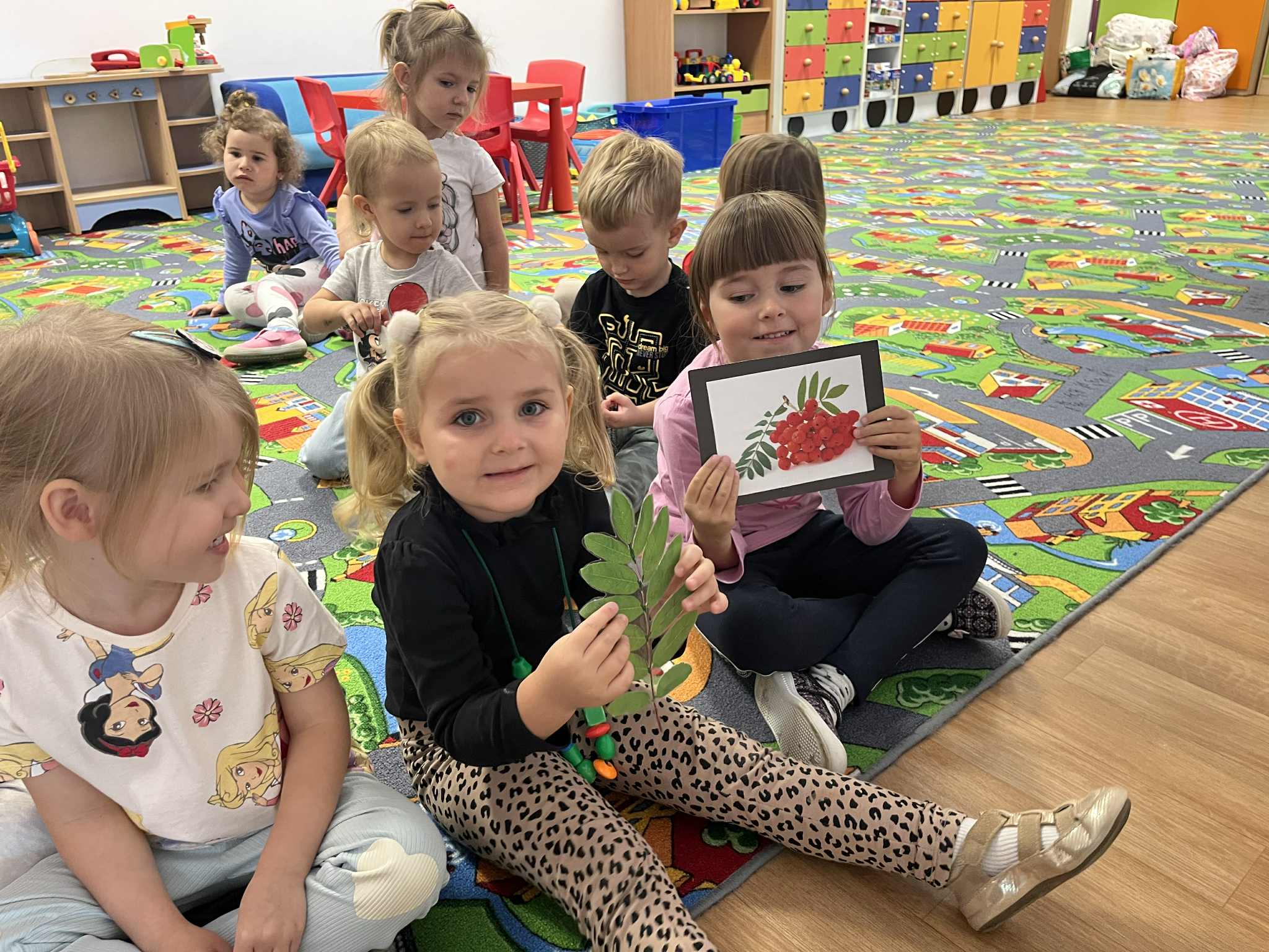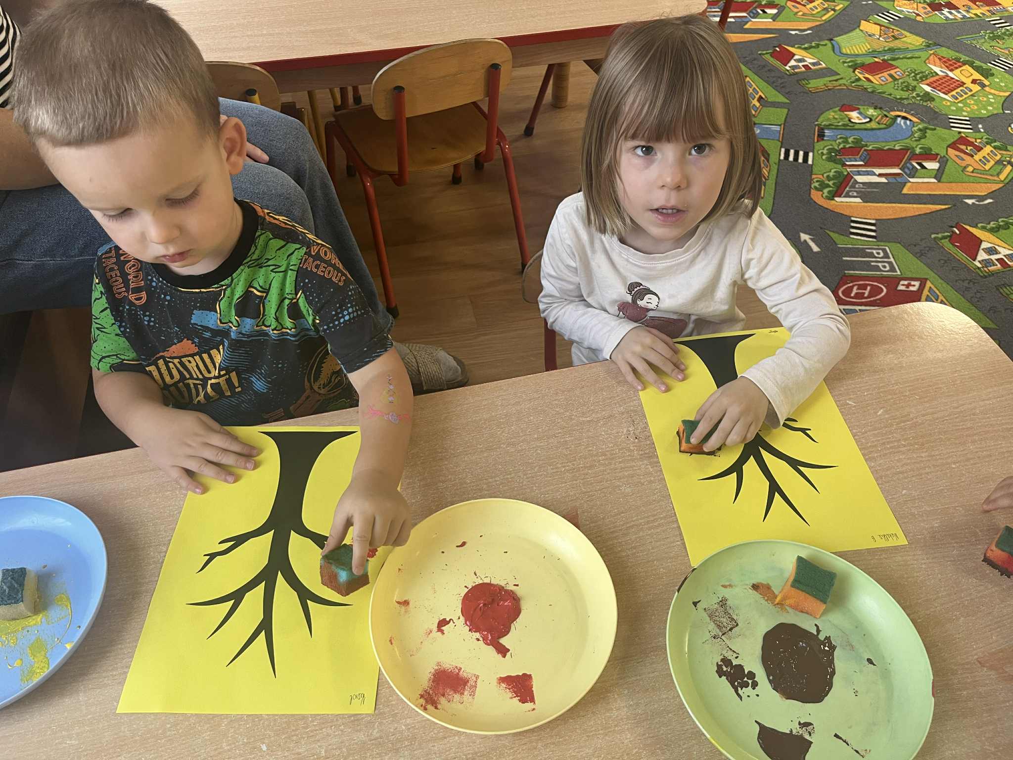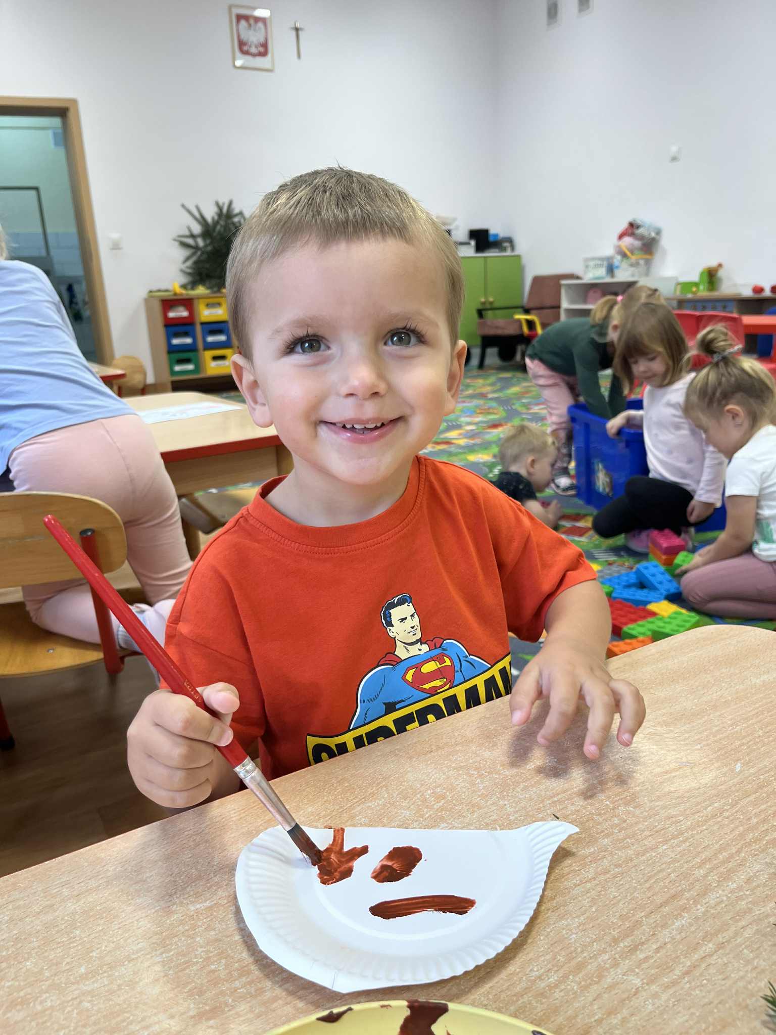 Miniony tydzień w naszym przedszkolu upłynął pod znakiem Złotej Jesieni. Dzieci z wielkim zaangażowaniem przynosiły z domów kasztany, żołędzie i inne skarby natury, które wspólnie wykorzystaliśmy do stworzenia jesiennej drogi sensorycznej. Chodziliśmy po niej w skarpetkach, a najodważniejsi – nawet boso! To była świetna okazja do rozwijania zmysłu dotyku i świetnej zabawy. Podczas zajęć rozmawialiśmy o drzewach i ich owocach, poznając takie gatunki jak: jarzębina, dąb, kasztanowiec oraz ich charakterystyczne owoce – żołędzie, kasztany czy korale jarzębiny. Wybraliśmy się również na spacer, podczas którego podziwialiśmy barwy jesiennych drzew. Udało nam się nawet znaleźć maślaki, które z radością zabraliśmy do przedszkola i wspólnie obejrzeliśmy z bliska. W piątek obchodziliśmy Dzień Drzewa. Z tej okazji dzieci stworzyły piękne, kolorowe prace plastyczne – każde drzewo było inne, wyjątkowe, tak jak nasi mali artyści.