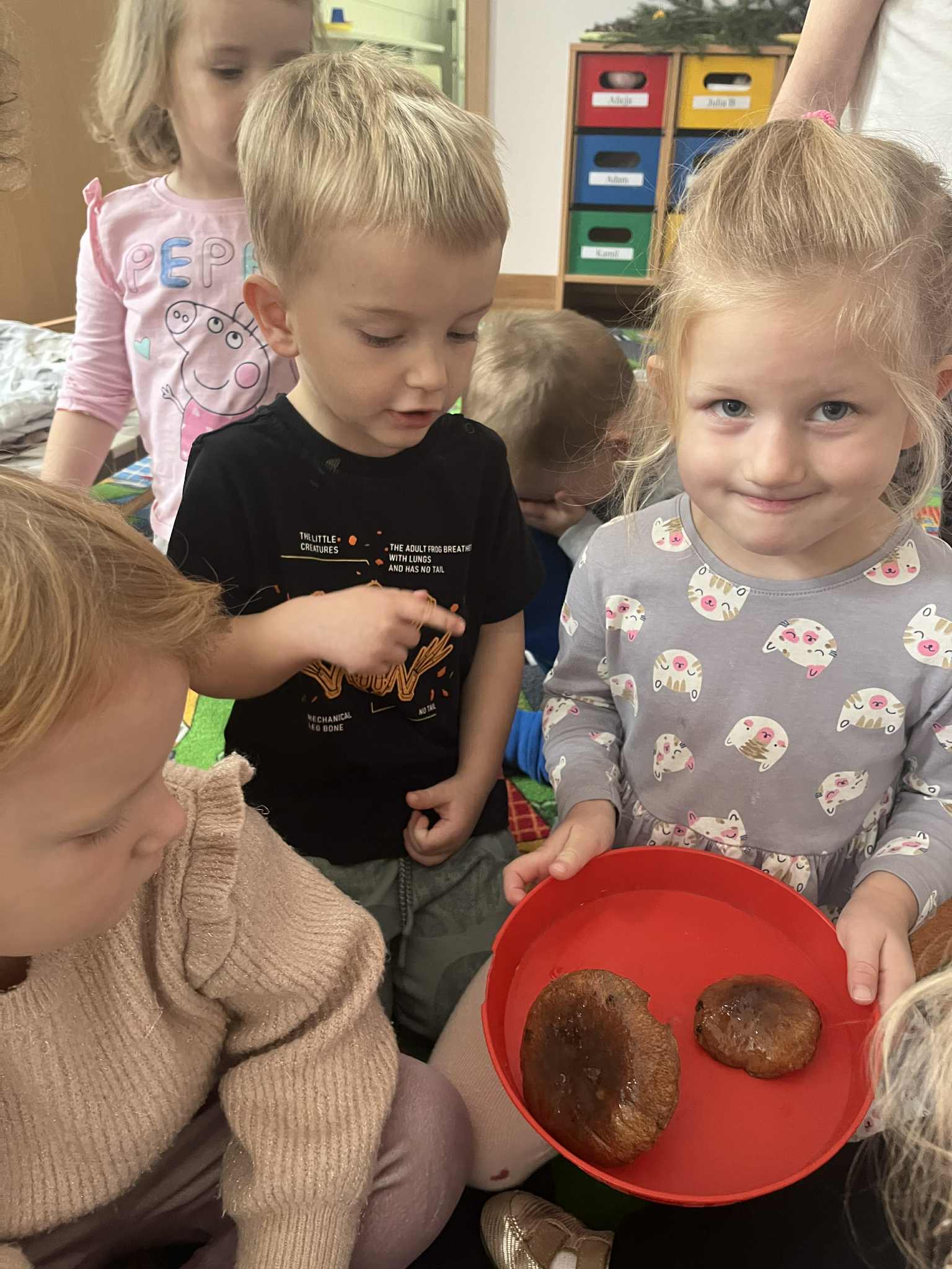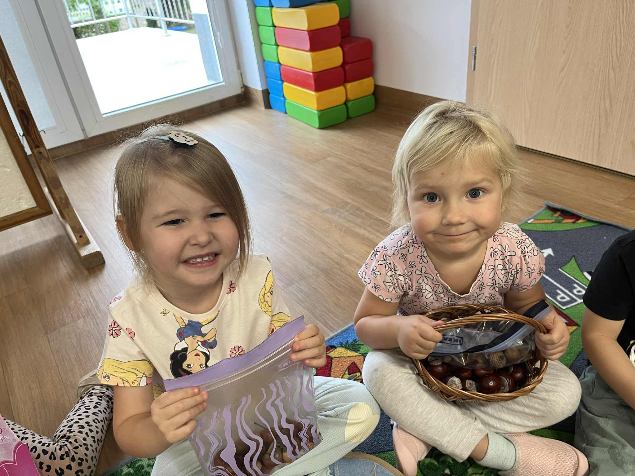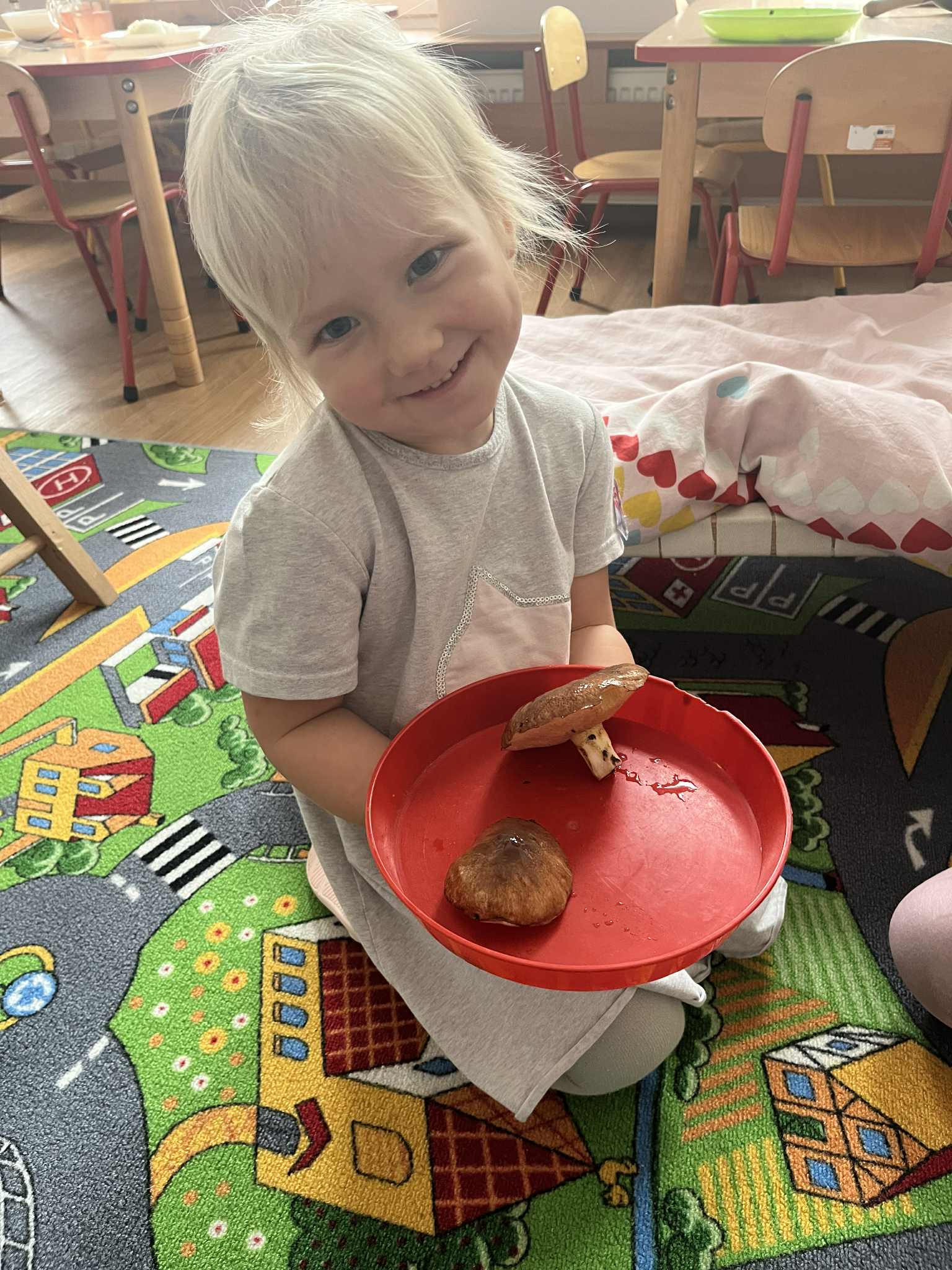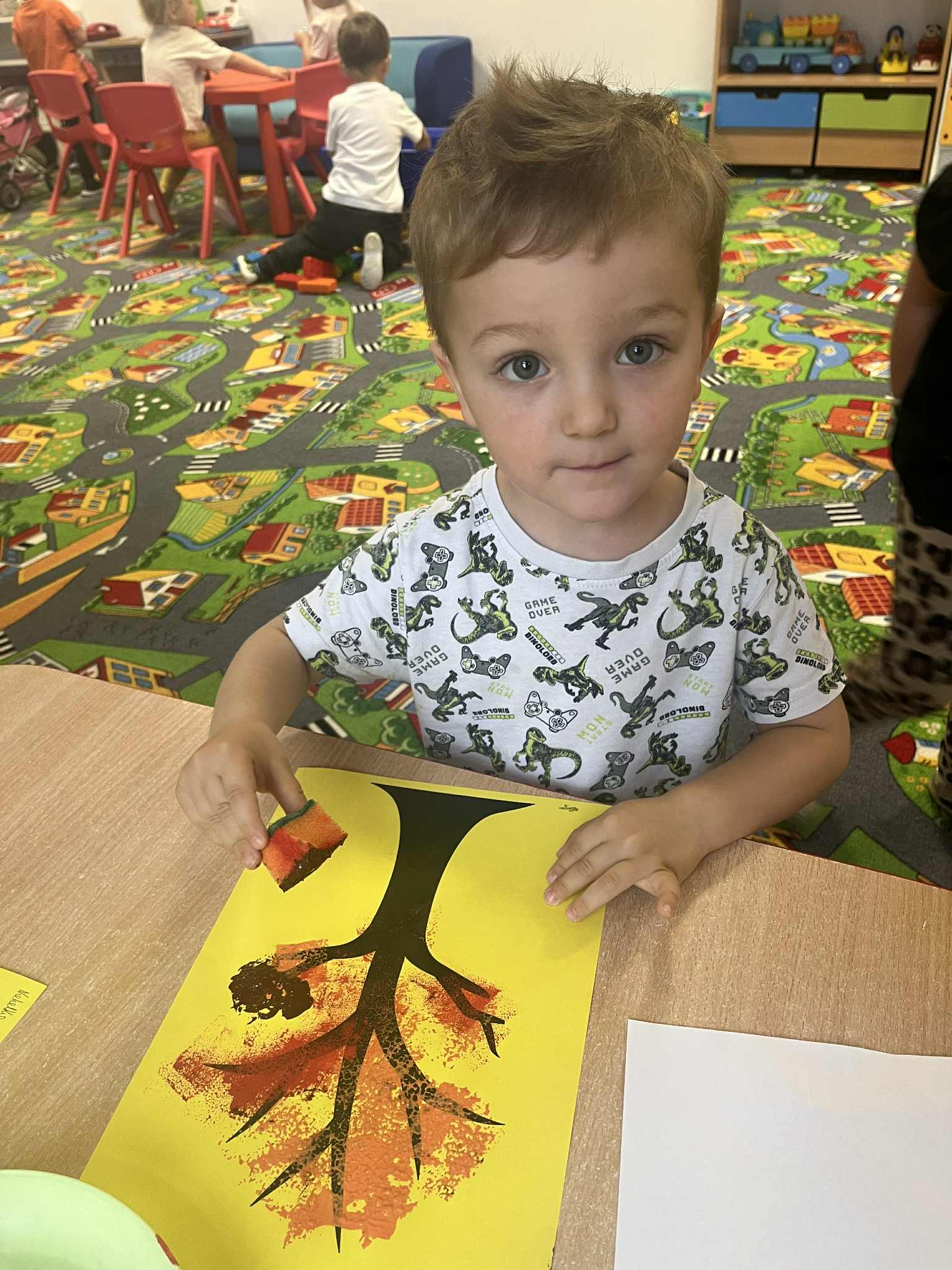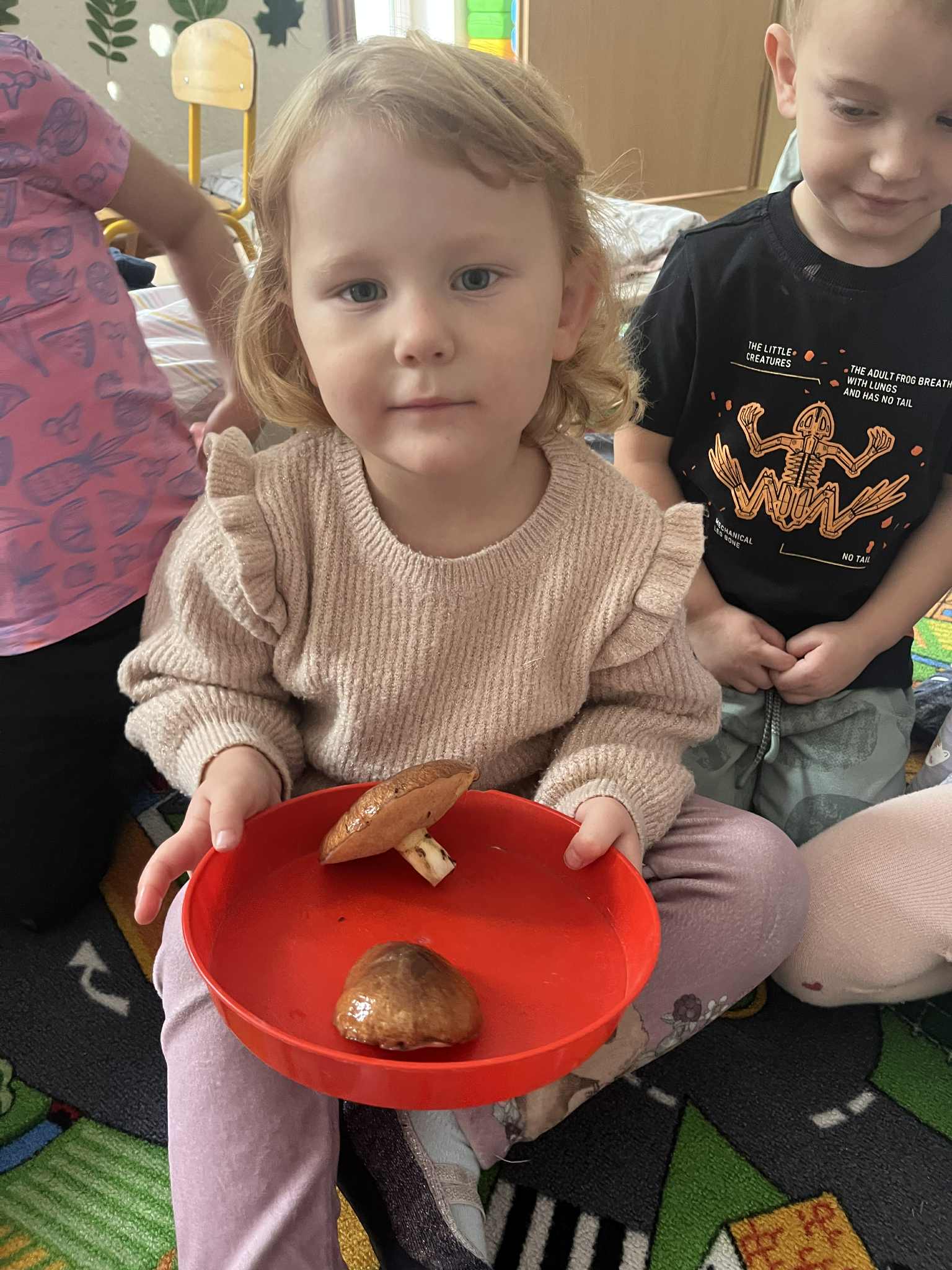 Miniony tydzień w naszym przedszkolu upłynął pod znakiem Złotej Jesieni. Dzieci z wielkim zaangażowaniem przynosiły z domów kasztany, żołędzie i inne skarby natury, które wspólnie wykorzystaliśmy do stworzenia jesiennej drogi sensorycznej. Chodziliśmy po niej w skarpetkach, a najodważniejsi – nawet boso! To była świetna okazja do rozwijania zmysłu dotyku i świetnej zabawy. Podczas zajęć rozmawialiśmy o drzewach i ich owocach, poznając takie gatunki jak: jarzębina, dąb, kasztanowiec oraz ich charakterystyczne owoce – żołędzie, kasztany czy korale jarzębiny. Wybraliśmy się również na spacer, podczas którego podziwialiśmy barwy jesiennych drzew. Udało nam się nawet znaleźć maślaki, które z radością zabraliśmy do przedszkola i wspólnie obejrzeliśmy z bliska. W piątek obchodziliśmy Dzień Drzewa. Z tej okazji dzieci stworzyły piękne, kolorowe prace plastyczne – każde drzewo było inne, wyjątkowe, tak jak nasi mali artyści.
